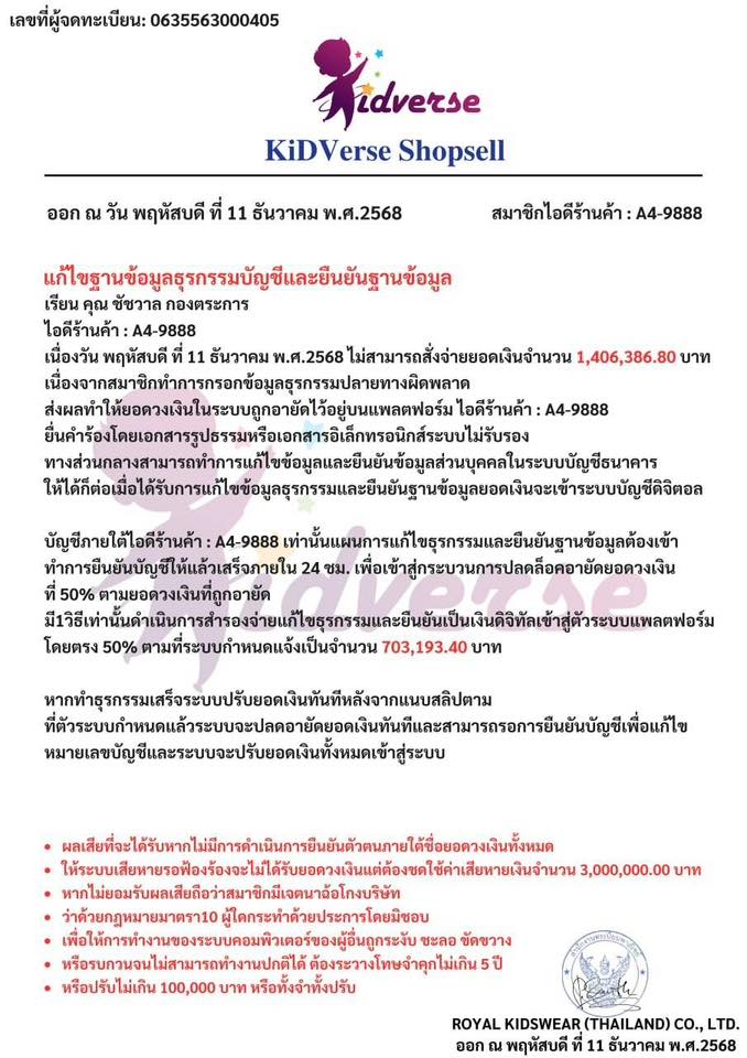 - เมื่อเข้าไปทำการถอนเงิน จะมีเหตุแจ้งว่าทำธุรกรรมผิดพลาด ทำให้ร้านค้าเสียหาย ต้องโอนเงินเข้ามาเพื่อทำการซ่อมแซมร้านค้า ถึงจะถอนยอดที่อยู่ในร้านค้าได้