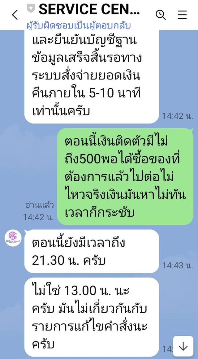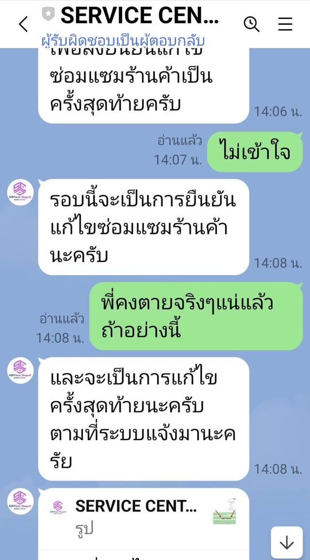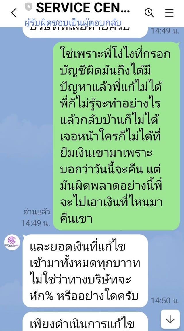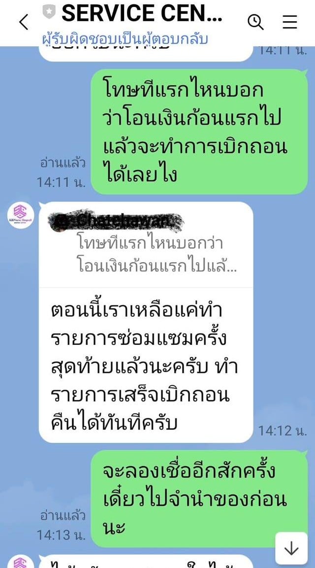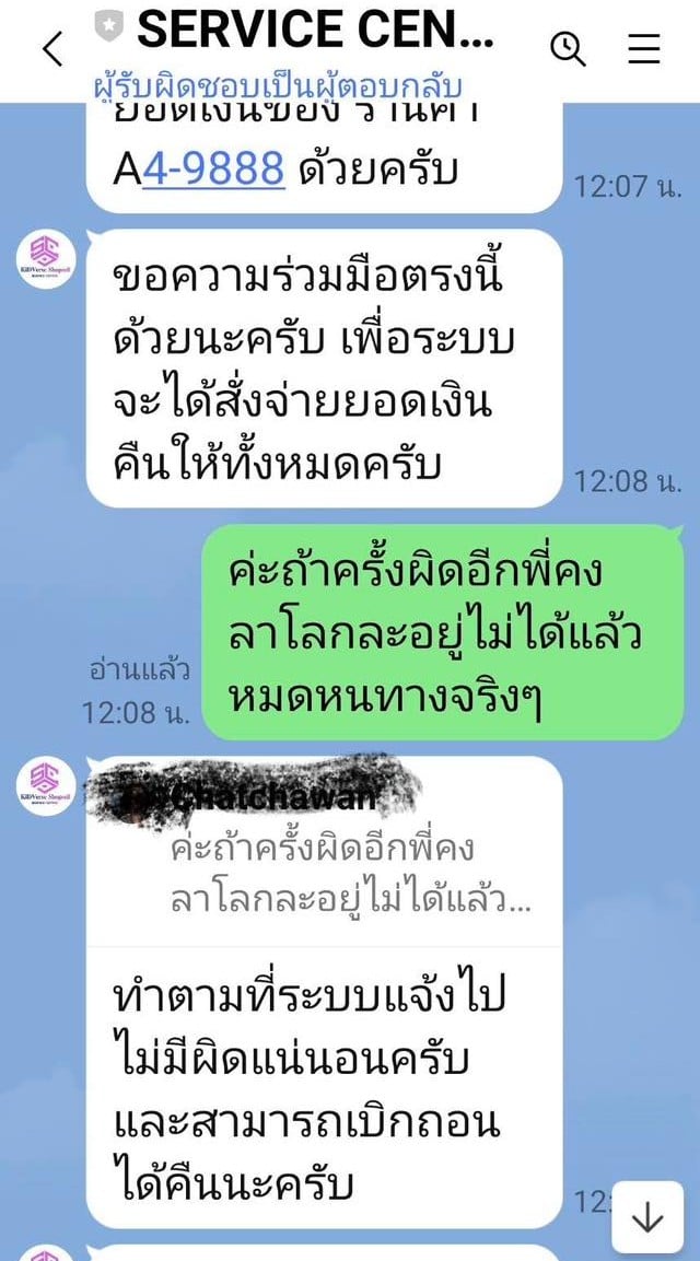 - แม่จึงทำการโอนเงินเข้าไปเพื่อทำการซ่อมแซมร้านค้า และพยายามจะถอนเงินที่อยู่ในร้านค้าออกมา แต่ก็ไม่สามารถถอนเงินได้ โดยทางมิจฉาชีพบอกว่าจะต้องทำการซ่อมแซมร้านค้า ภายใน 5-10 นาที ไม่อย่างนั้นบัญชีร้านค้าจะถูกอายัดไม่สามารถถอนเงินได้อีก และเมื่อทำธุรกรรมผิดพลาด ร้านค้าเสียหายก็ต้องจ่ายเงินเข้าไปเพื่อซ่อมแซมร้านค้าอีก