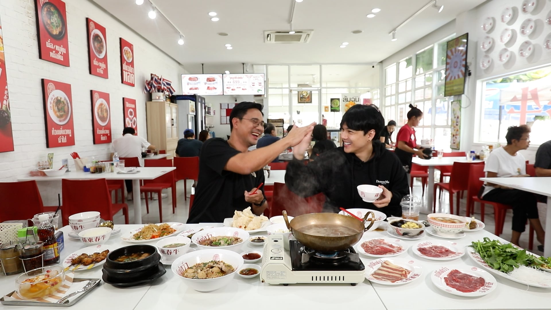 ประเด็นดราม่าทำให้ร้านปังเหรอ คือตอนนั้นเดือนนั้นเป็นเดือนที่ฝนตก แน่นอนร้านอาหารที่ไม่ได้อยู่ในที่ปิดมันได้รับผลกระทบหมดแหละ แล้วค่าใช้จ่ายมันก็สูง ยอดมันก็ตกมาเรื่อยๆตามฤดูกาล เกิดเหตุการณ์ที่เป็นประเด็นในรายการแฉ ที่เราเป็นพิธีกรเพียงแค่ 5 วันเท่านั้นกลับมาฟื้นเลย คนเยอะมากร้านระเบิดเลย ทุกคนมาให้กำลังใจหมด ทุกคนถือธงชาติมาผูกโบว์ริบบิ้น มาแบบถล่มทลายรถติดทั้งซอย คืนเดียวเท่านั้น ประเด็นมันเซนซิทีฟปลุกพลังคนรักชาติ”