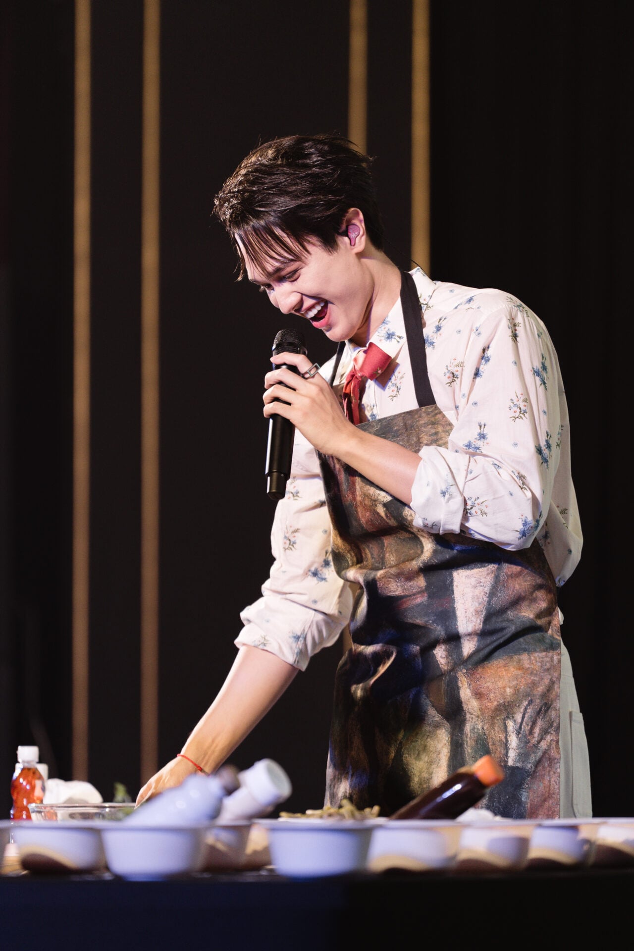 ต้อนรับเข้าสู่งานด้วยเพลง “ใจให้ไป” และ “แพ้คำว่ารัก” ที่เลือกมาเพื่อทุกคนโดยเฉพาะ ก่อนจะเปิดตัวพิธีกร “มอสมัดจุก” งานนี้ไม่ได้มาสัมภาษณ์งานแต่มาถามคำถามจากแฟน ๆ ต่อด้วยช่วงพิเศษที่มีผู้โชคดีได้รับการ์ดพิเศษขึ้นมาร่วมสนุกบนเวทีและรับของรางวัลกันไปแบบสนุกสนาน ก่อนจะเข้าสู่โหมดพ่อครัวที่หนุ่มไมกี้ขอพรีเซนต์สุด ๆ แต่จะให้มาทำเมนูธรรมดาก็คงไม่ได้ งานนี้เลยต้องมีเงื่อนไขพิเศษกันหน่อย กับโจทย์วัตถุดิบ“โยเกิร์ต” จากนางเอกคู่ซี้อย่าง “ญดา นริลญา” ตามมาด้วย “วาซาบิ”จาก “เทศน์ ไมรอน” และ “บลูเบอรี่” จาก แบม-สราลี รวมทั้งยังมีวัตถุที่ต้องแรมดอมมาเป็นส่วนผสมของยำจานพิเศษนี้อีกด้วย พร้อมอีกหนึ่งเซอร์ไพรส์เรียกเสียงกรี๊ดจากแฟน ๆ เมื่อ “เก้า นพเก้า” และ “ตี๋ ธนพล” ขออาสาขึ้นมาชิมเมนูสุดสดชื่น