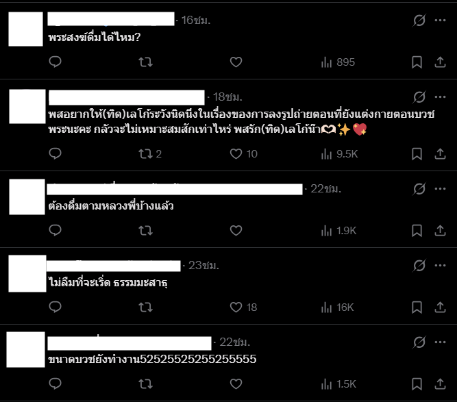- อยู่ในกิจของสงฆ์ เล่นโทรศัพท์ได้เหรอ ไม่ได้แน่ใจว่าในบริบทนี้หมายถึงการเล่นโซเชียลรึป่าวนะครับ : ซึ่งส่วนตัวได้มีการกลับมาแอคทีฟโซเชียลในวันที่ 26/02/69 หลังเวลา 10:25น. (หลังจากลาสิกขา) ครับ