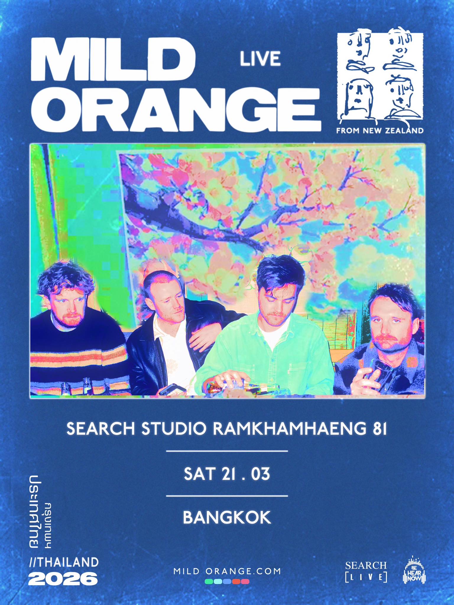 เตรียมล็อกคิวให้พร้อม แล้วปล่อยใจให้ลอยไปกับเมโลดี้สุดละมุน เพราะวงอินดี้ อัลเทอร์เนทีฟจากนิวซีแลนด์ Mild Orange กำลังจะบินลัดฟ้ามาสร้างค่ำคืนสุดพิเศษในประเทศไทยอย่างเป็นทางการ กับการแสดงสดเต็มรูปแบบครั้งแรกในไทย ในวันเสาร์ที่ 21 มีนาคม 2026 ณ Search Studio รามคำแหง 81