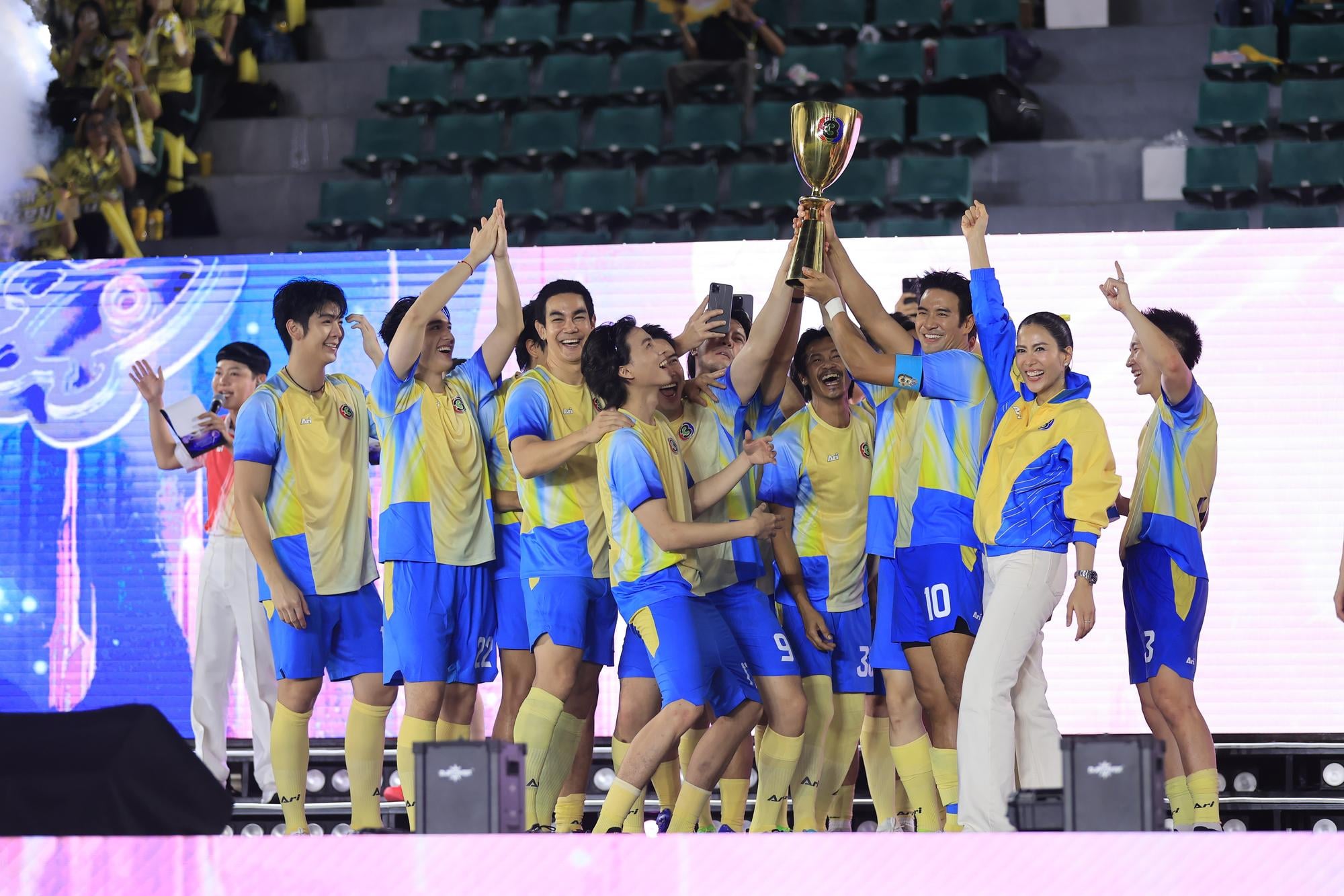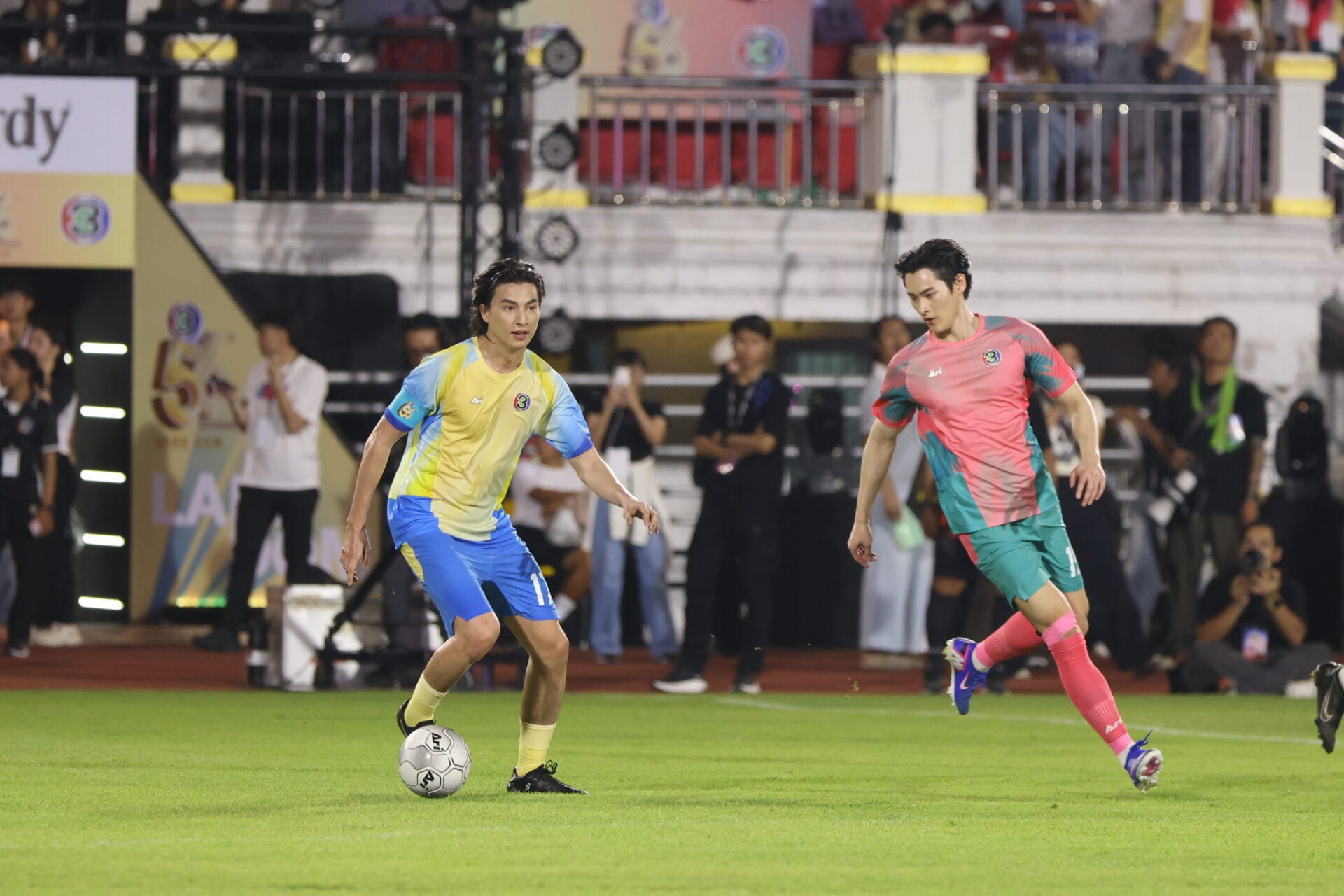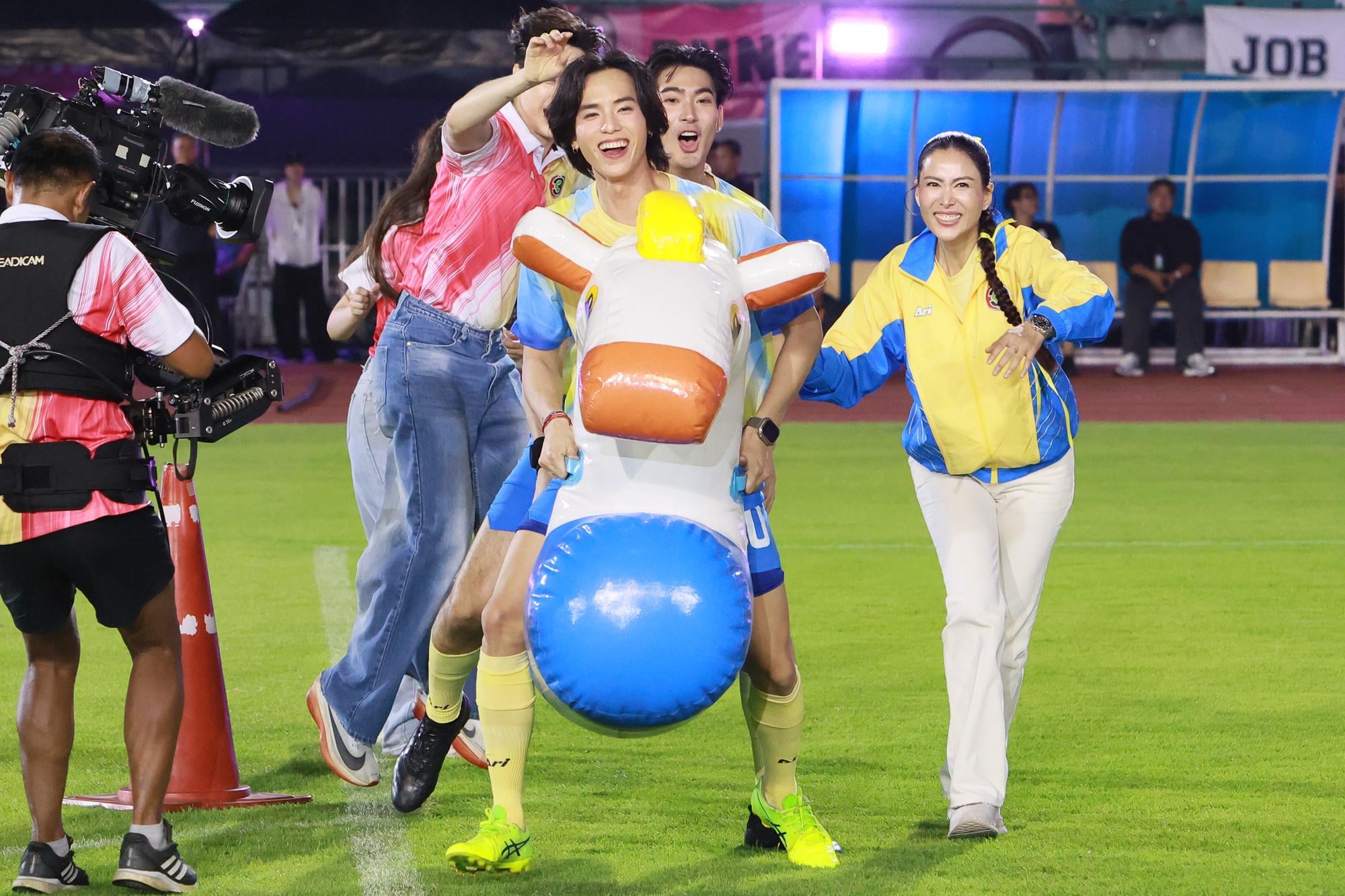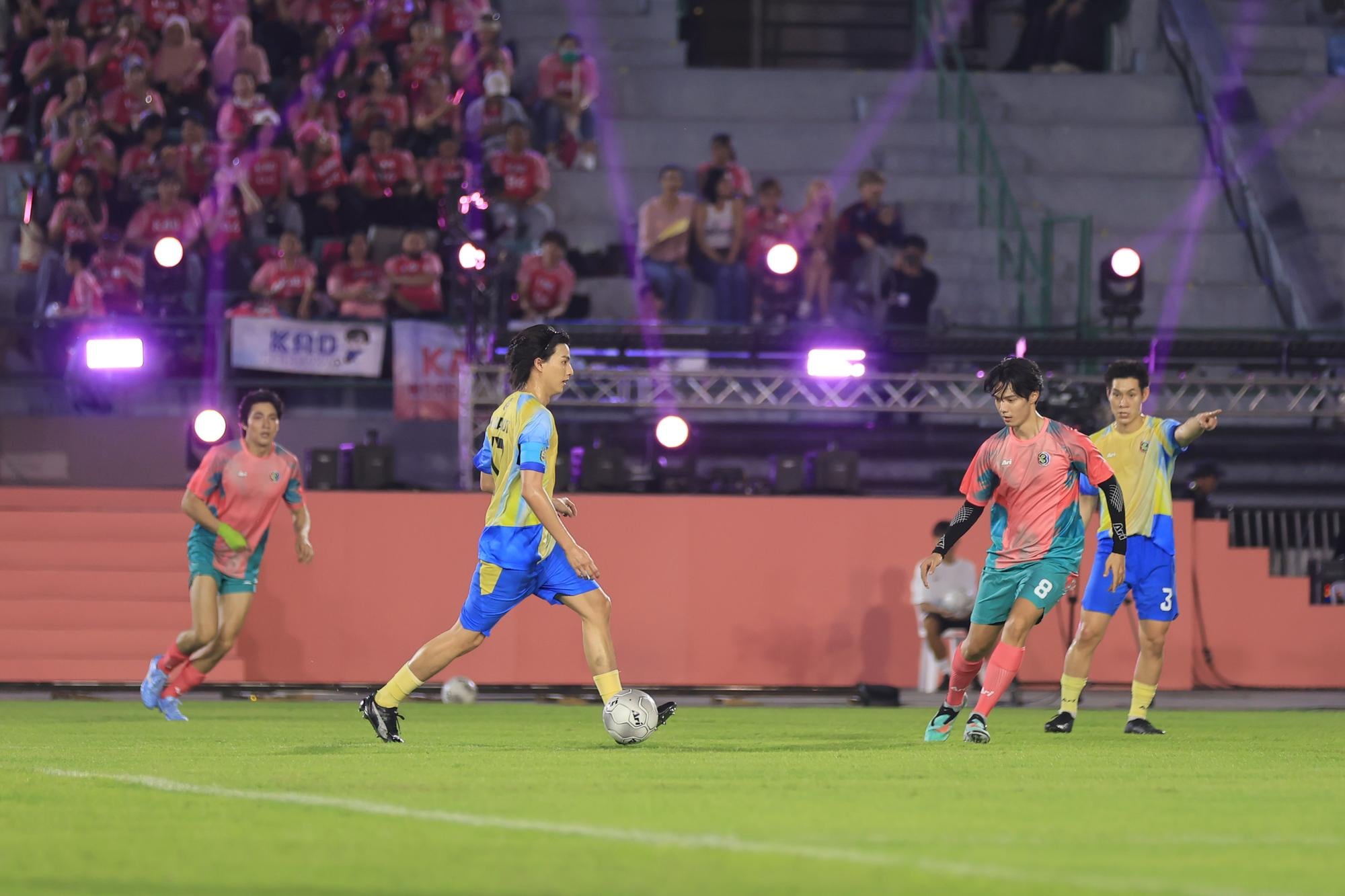 งานนี้ได้สองพิธีกรบรรยายเกมในสนาม อย่าง บิ๊กจ้ะ สาธิต และ บูม สุภาพร ส่งเข้าสู่ศึกฟุตบอลครึ่งแรก แค่เปิดเกมมาก็เดือดตั้งแต่นาทีแรก ทั้งสปีดเกม การแย่งบอล การยิงประตู เรียกได้ว่ามีทั้งจังหวะเฉียด จังหวะหวาดเสียว และจังหวะลุ้นจนคนดูแทบนั่งไม่ติดเก้าอี้! ก่อนจบครึ่งแรกด้วยสกอร์ 0 ต่อ 0 แล้วพักเบรคมาเข้าช่วงโชว์สุดร้อนแรง กับเพลง “Bad Shawty” ทำเอาเวทีลุกเป็นไฟ! กับ 4 พระเอก เด่นคุณ, ภณ, เซ้นต์, มีน และ 2 นางเอก อแมนด้า และ ยิหวา ที่โชว์สเต็ปแดนซ์แบบไม่มีใครยอมใคร ทั้งเซ็กซี่ เท่ ครบ! ส่งต่อให้กับความสดใสปนแซ่บกับ 5 นางเอก เดนิส, ติต๊ะ, น้ำฟ้า, เคท และ พริกขิง ที่ขนเสน่ห์มาเต็มเวที กับเพลง “Girls Like Me” ทำเอาคนดูยิ้มตามทั้งสนาม และต้องกรี๊ดกันต่อกับโชว์ของ สมิธ, ลิซ่า, แคนดี้, นีญ่า และน้องใหม่ อิมิลี่ ที่มาแบบเฉิดฉาย มั่นใจทุกสเต็ปกับเพลง “Fashion” ก่อนจะเรียกเสียงกรี๊ดแบบรัว ๆ กับเพลง “ห้ามขยับจับนะ” ของ 5 หนุ่ม ตี๋, จูเนียร์, ฟลุ๊คจ์, จ็อบ และ อ๋อง ที่ออกมาโชว์ความกวน ความเท่ มาปล่อยพลังความสนุกแบบสุดเหวี่ยงกับ ไมกี้, อู๋, พาย, มิ้นท์ และ พีพี ในเพลง “Too Much So Much Very Much” ทำเอาคนดูโยกตามกันทั้งสนาม