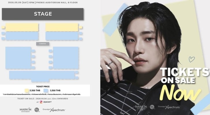ปักหมุดความฟิน: วันเสาร์ที่ 9 พฤษภาคม 2569 ณ PHENIX Auditorium Hall บัตรราคา 5,500 / 3,500 บาท พร้อม Fan Benefits แบบจัดเต็มทุกที่นั่ง: Hi-touch, โปสเตอร์, โฟโต้การ์ด และของที่ระลึกสุดพิเศษ แถมลุ้นสิทธิ์ใกล้ชิดระดับ 1:1 สำหรับผู้ถือบัตร 5,500 บาท