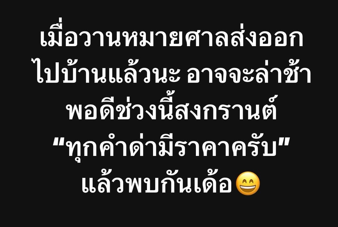 ทำไมต้องขึ้นศาลเหรอ ก็เป็นเกี่ยวกับการที่โดนคอมเมนต์ด่าพ่อแม่ผมนี่แหละครับ เกี่ยวกับที่มันลามปามมาจากเรื่องดราม่า เราก็เลยรู้สึกว่า คือเราอยากให้เขาได้เห็นว่า สุดท้ายแล้วคำว่า “บุพการี” มันคือสิ่งที่ใหญ่ที่สุด สูงที่สุด และอยากให้เขารู้ว่า มันไม่สามารถที่จะมากล่าวคำพวกนี้ และด่าบิดามารดาของใครได้ง่าย ๆ ถ้าเกิดสมมุติว่าเราชนะ คำขอโทษหรือให้อภัยนี่ไม่ครับ เราต้องการเงิน เพื่อที่จะไปทำบุญต่อครับ”
