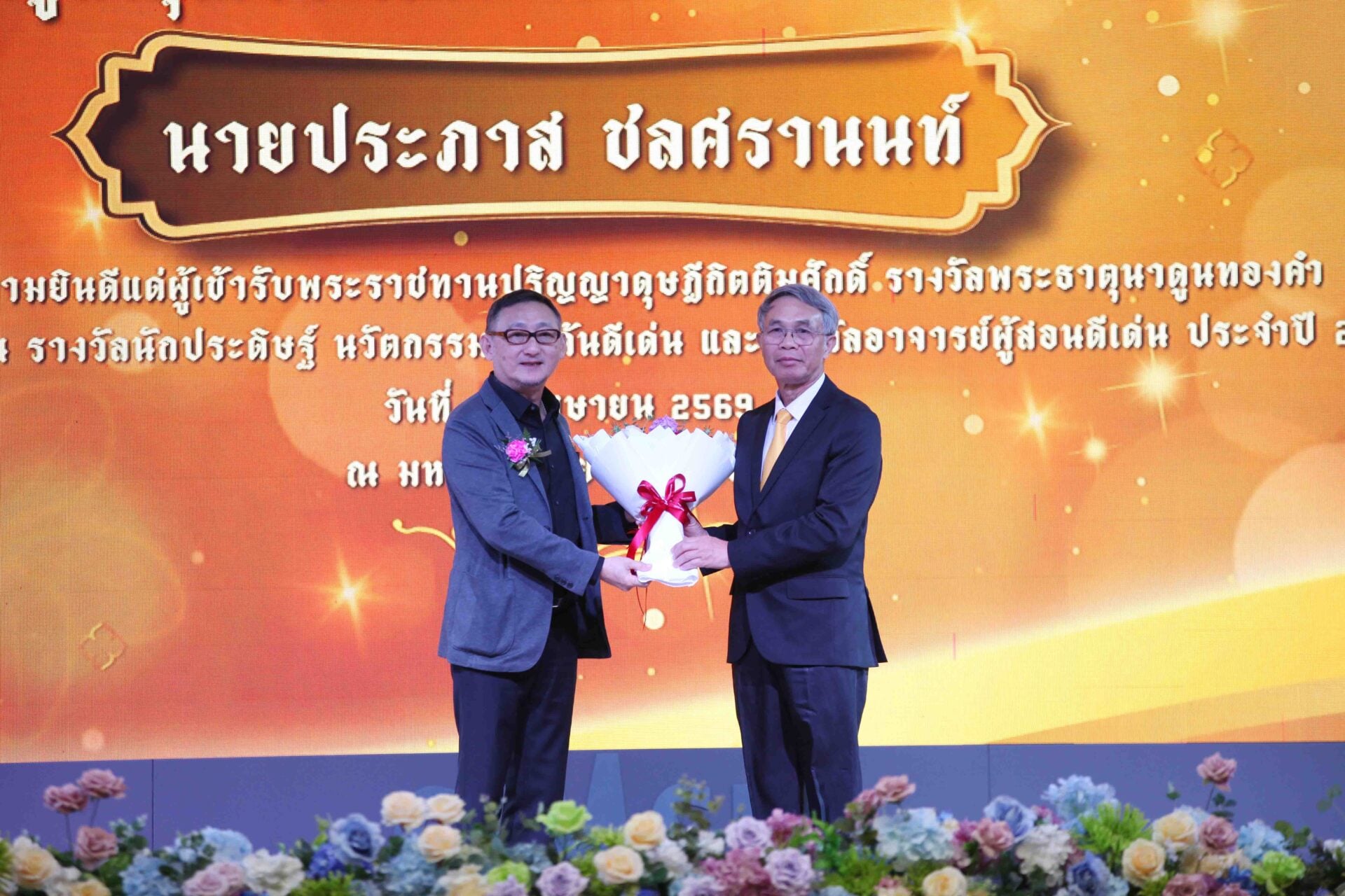 ประภาส ชลศรานนท์ รับพระราชทานรางวัล พระธาตุนาดูนทองคำประจำปี 2568 ประเภทผู้ทำคุณประโยชน์แก่มหาวิทยาลัยมหาสารคาม และ/หรือประเทศชาติ จาก สมเด็จพระกนิษฐาธิราชเจ้า กรมสมเด็จพระเทพรัตนราชสุดาฯ สยามบรมราชกุมารี ณ มหาวิทยาลัยมหาสารคาม