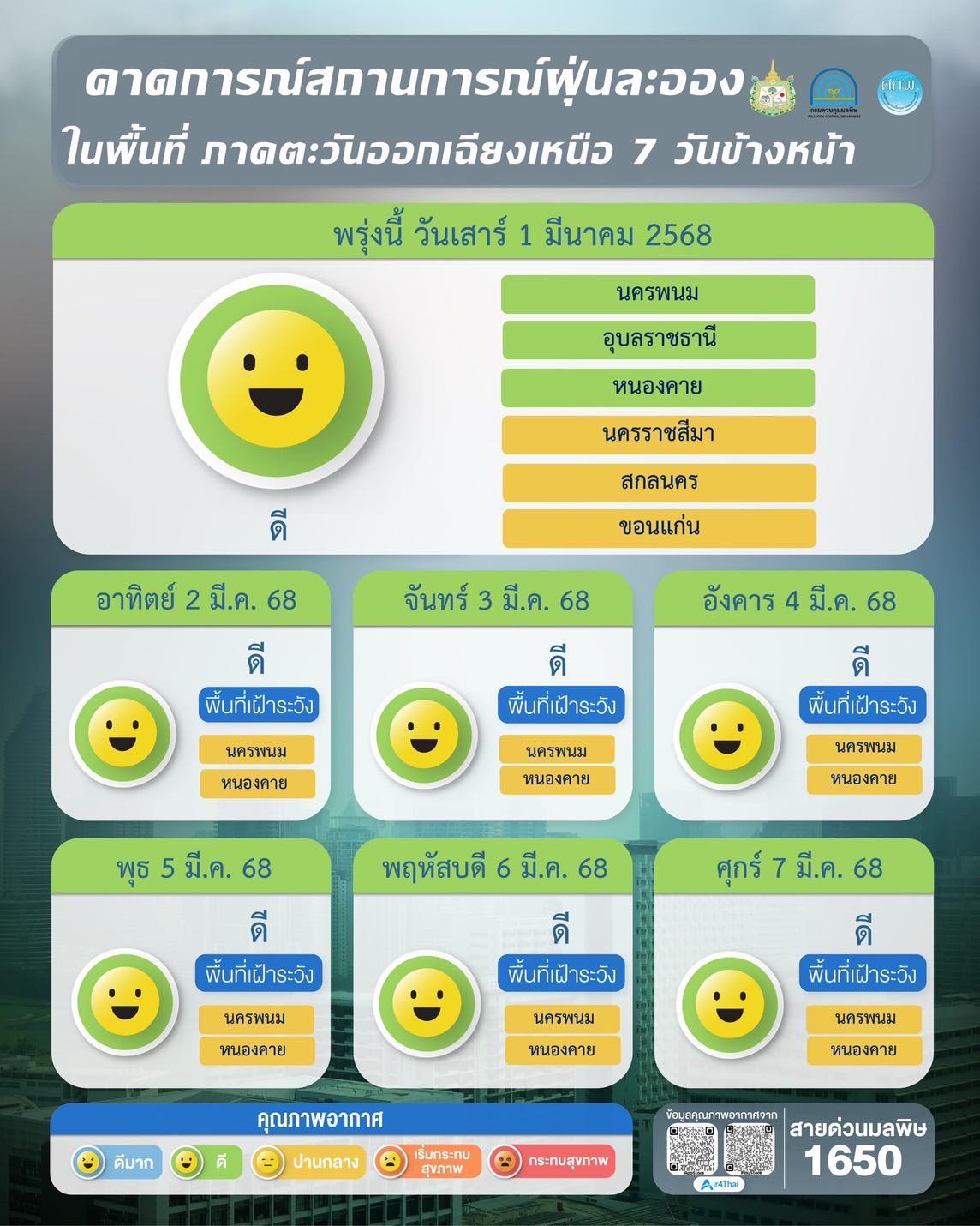 ภาคตะวันออกเฉียงเหนือ มีแนวโน้มลดลงวันที่ 1 – 7 มี.ค. 2568