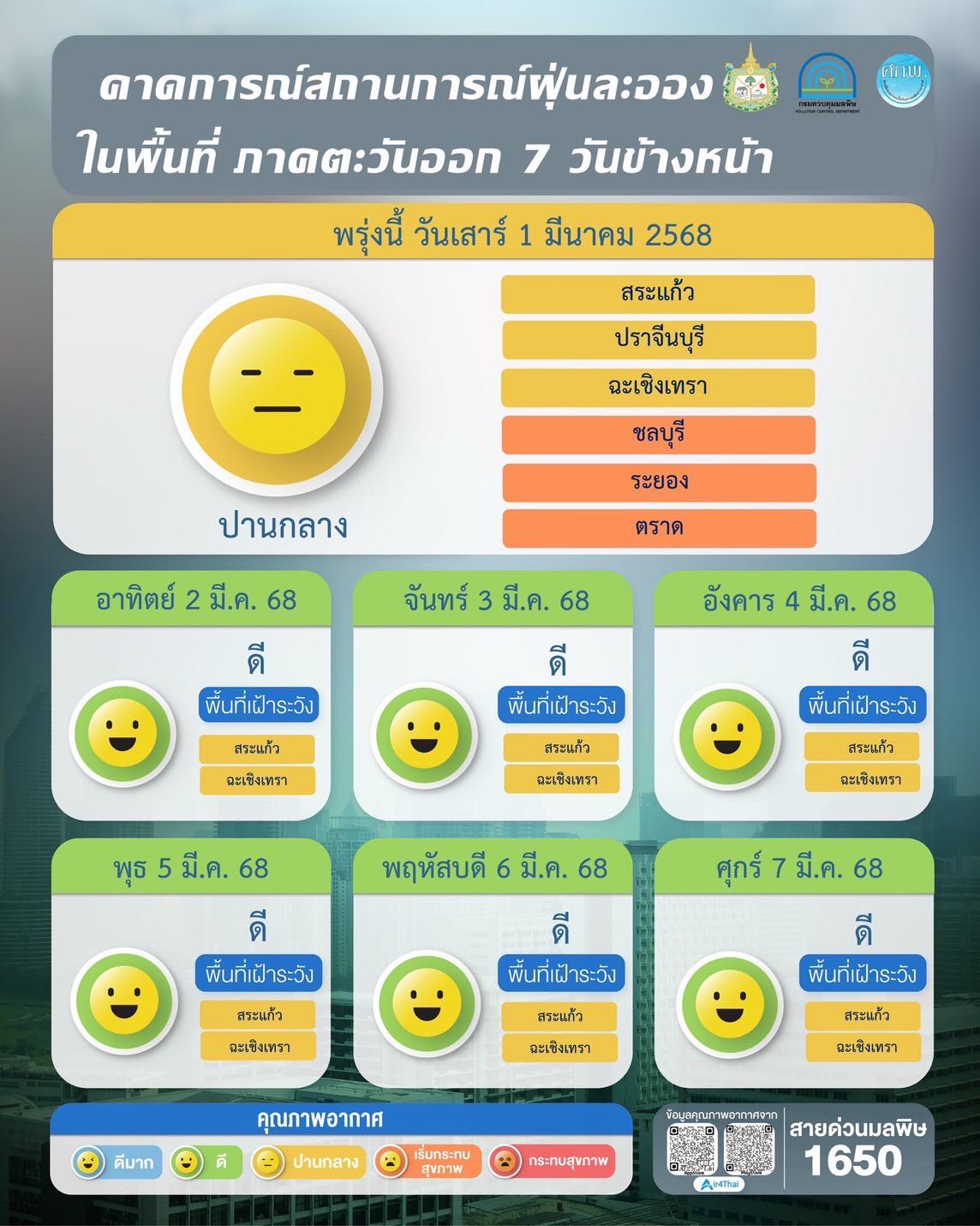 ภาคตะวันออก มีแนวโน้มลดลงวันที่ 2 – 7 มี.ค. 2568 และยังคงต้องเฝ้าระวังในบางพื้นที่