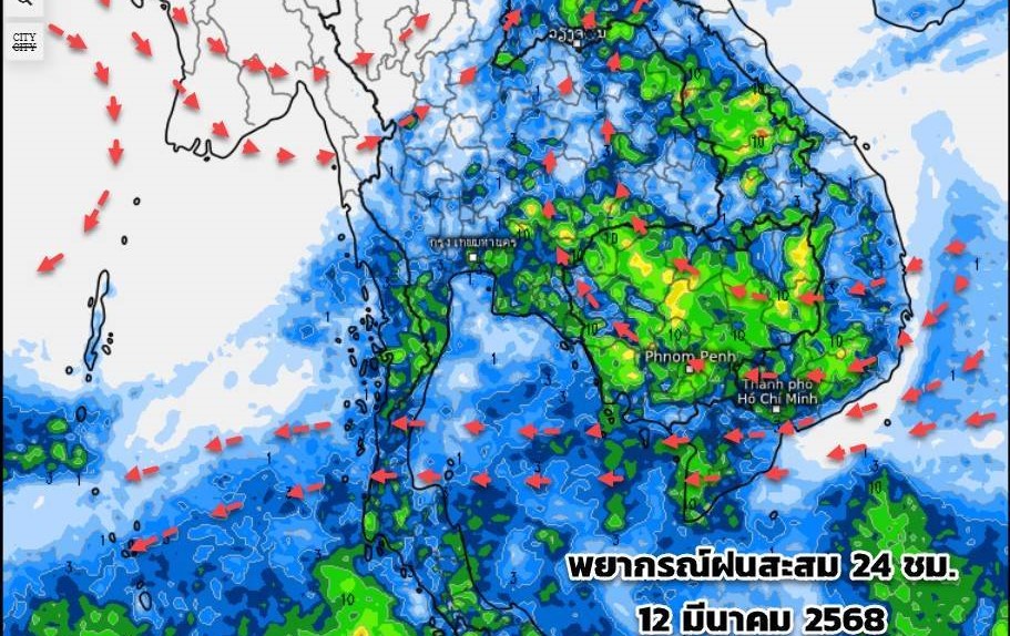 กรมอุตุนิยมวิทยา อัปเดตพยากรณ์ฝนสะสม 10 วันล่วงหน้า (24 พ.ย. – 3 ธ.ค. 68) จากแบบจำลอง WRFDA ของกรมอุตุนิยมวิทยา