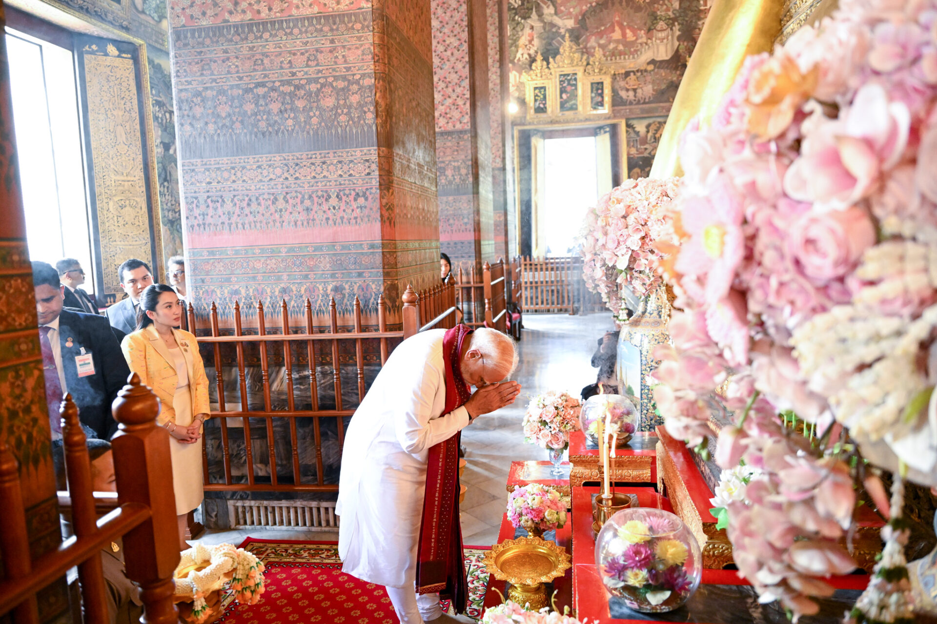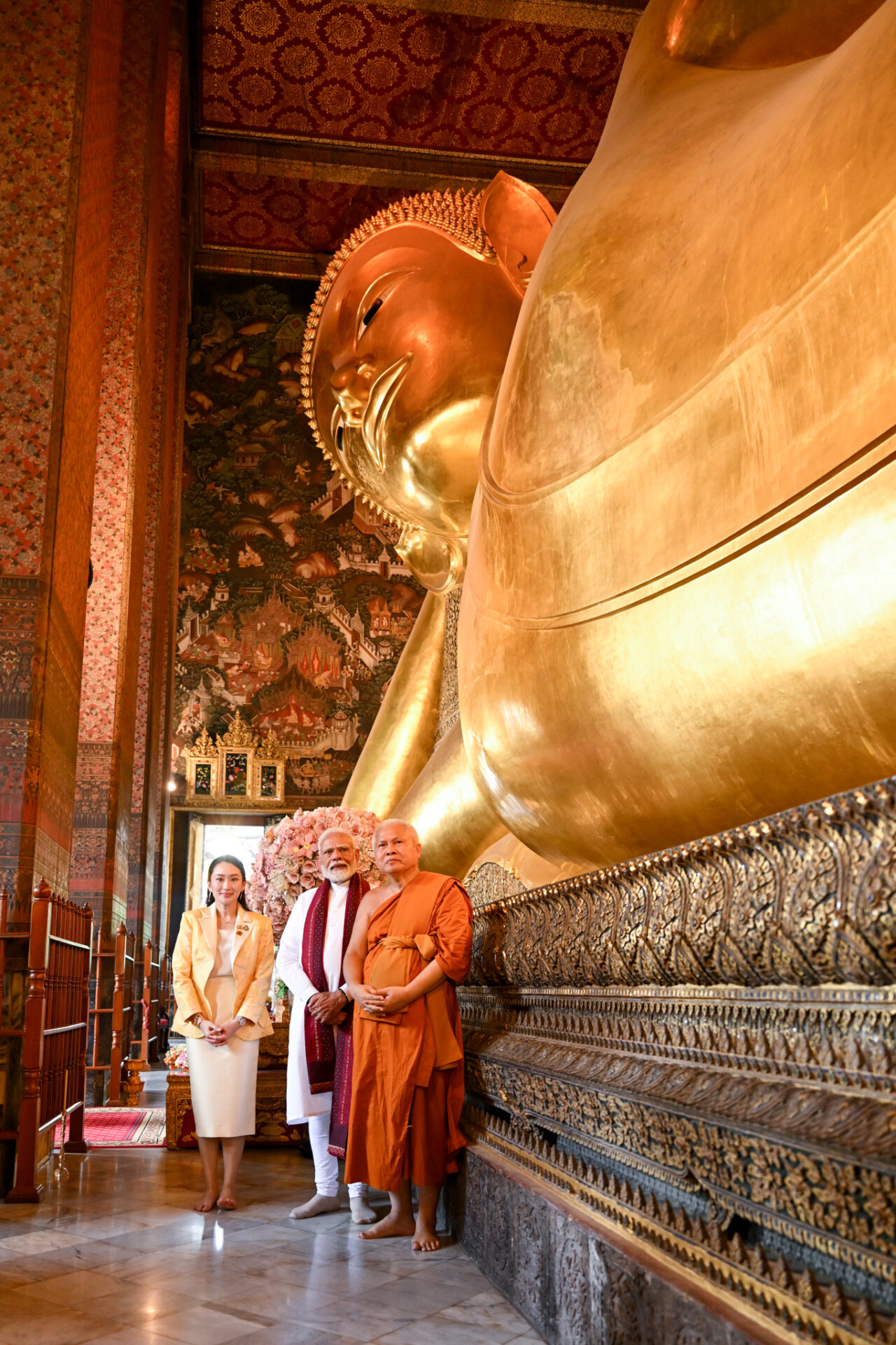 4 เมษายน 2568 - เวลา 15.00 น. นางสาวแพทองธาร ชินวัตร นายกรัฐมนตรี พร้อมด้วย นายนเรนทร โมที นายกรัฐมนตรีแห่งสาธารณรัฐอินเดียได้เดินทางเข้าเยี่ยมชมวัดพระเชตุพนวิมลมังคลารามราชวรมหาวิหาร หรือวัดโพธิ์ วัดสำคัญของประเทศและมีความเชื่อมโยงทางวัฒนธรรมกับอินเดีย โดยผู้นำทั้งสองได้เข้าเยี่ยมชมวิหารพระพุทธไสยาส ซึ่งเป็นที่ประดิษฐานพระพุทธไสยาส หรือพระนอน วัดโพธิ์ อันเป็นสัญลักษณ์ทางพุทธศาสนาและเป็นสถานที่สำคัญด้านประวัติศาสตร์และการท่องเที่ยวของไทย