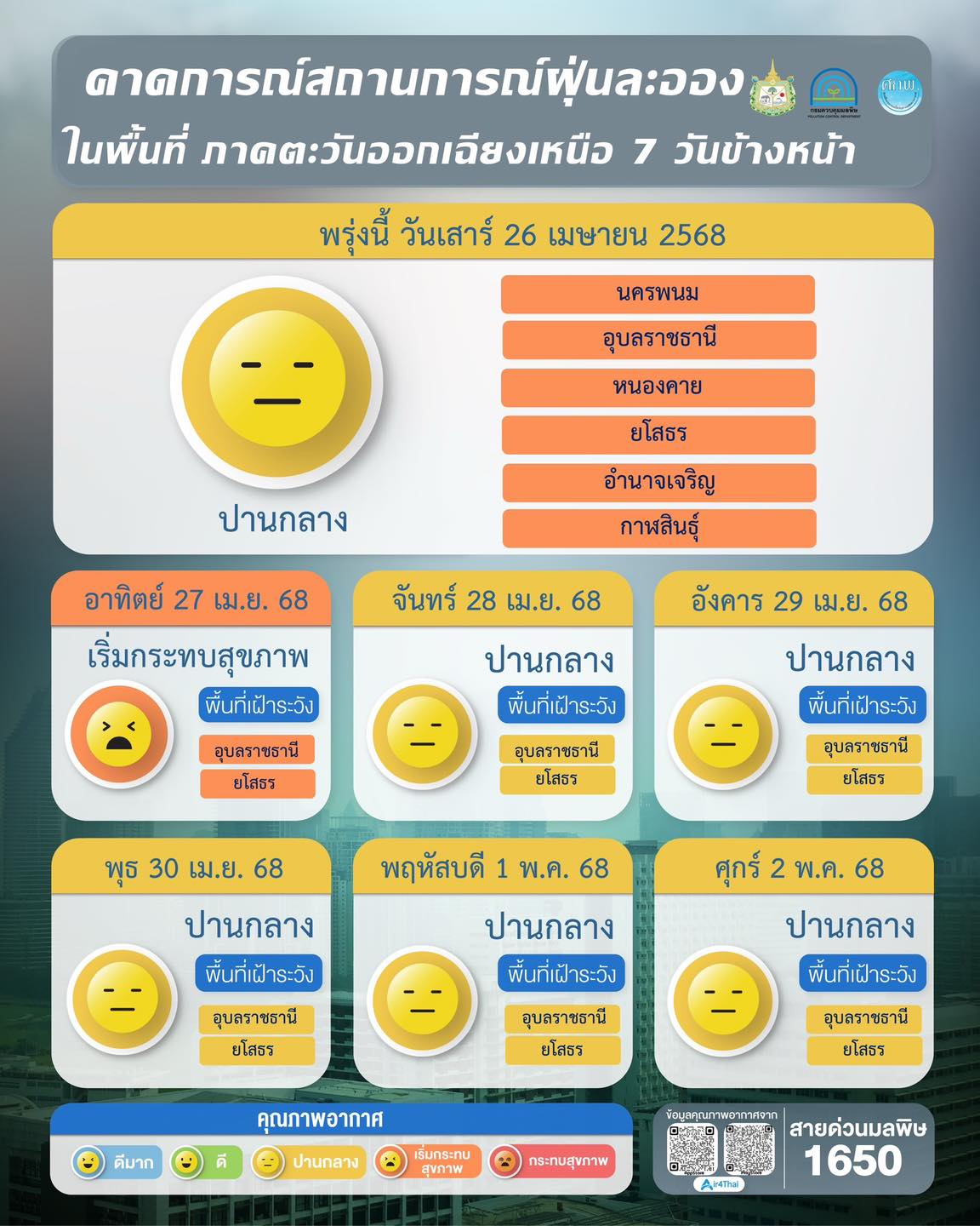 ภาคตะวันออกเฉียงเหนือ มีแนวโน้มเพิ่มขึ้นวันที่ 27 เม.ย. 2568 และยังคงต้องเฝ้าระวังในบางพื้นที่