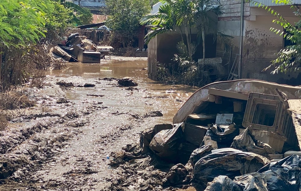 ตอนน้ำท่วมแม่สาย เชียงราย ปีก่อน เท้งมาแบบคนที่ตาใสเลย นับ 1 จับต้นชนปลายไม่ถูก แต่มีความตั้งใจ มาแต่ตัวจริงๆ ไม่มีแม้อุปกรณ์ล้างบ้าน ตั้ง
