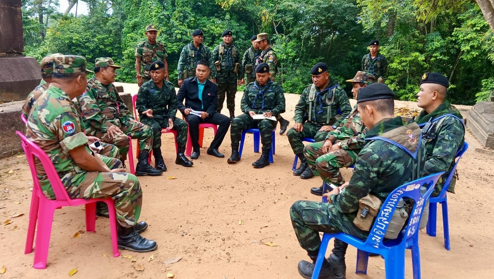 โดยเมื่อช่วงเช้าที่ผ่านมา พ.อ.บุญเสริม บุญบำรุง รอง ผบ.กกล.สุรนารี ได้หารือร่วม พล.ต.เนี๊ยะ วงค์ ผบ.พลน้อย ร.42 เพื่อพบปะหารือ ณ ปราสาทตาเมือนธม โดยมีสรุปผลการพบปะดังนี้