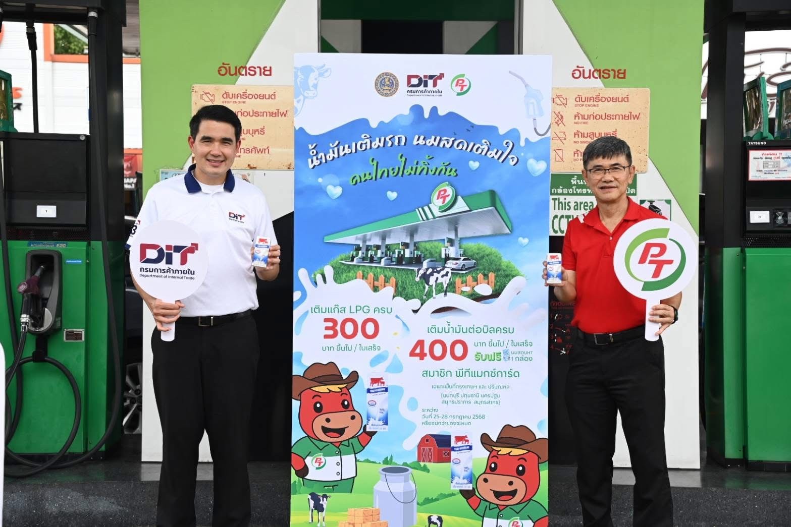 DIT กรมการค้าภายใน เดินหน้าโครงการ “น้ำมันเติมรถ นมสดเติมใจ คนไทยไม่ทิ้งกัน” แจกนม UHT ผ่านสถานีบริการน้ำมัน 4 แบรนด์ดัง PT PTT Bangchak Succo ช่วยเกษตรกรผู้เลี้ยงโคนม–ผู้ประกอบการนมพาณิชย์ พร้อมเชิญชวนคนไทยร่วมบริโภคนม เพื่อสุขภาพดีและสนับสนุนเกษตรกร