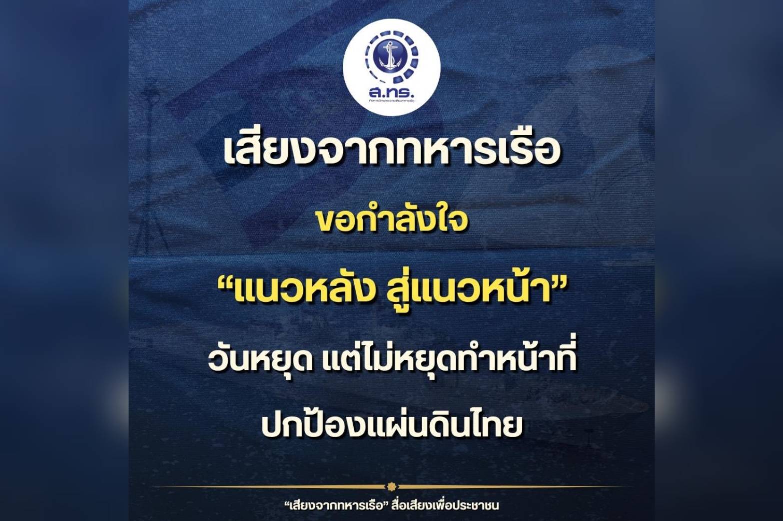 3 ส.ค.2568-เพจเสียงจากทหารเรือ โพสต์ข้อความ 1 ข้อความของท่าน “คือกำลังใจของเรา” พร้อมระบุว่า เสียงจากทหารเรือ “ขอกำลังใจแนวหลัง สู่แนวหน้า” วันหยุด แต่ไม่หยุดทำหน้าที่ ปกป้องแผ่นดินไทย
