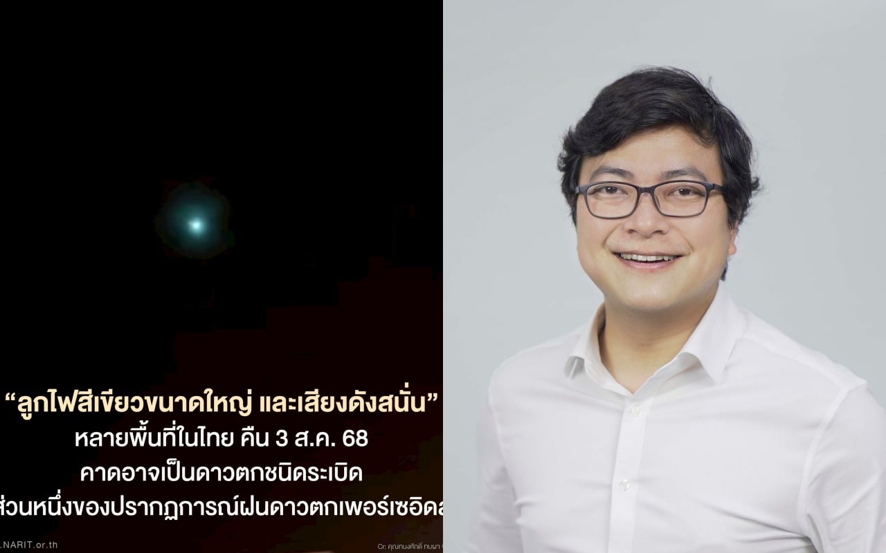 4 ส.ค.2568-สถาบันวิจัยดาราศาสตร์แห่งชาติ (องค์การมหาชน) (สดร. หรือ NARIT) กระทรวงการอุดมศึกษา วิทยาศาสตร์ วิจัย และนวัตกรรม (อว.) ชี้แจงกรณีที่มีรายงานการพบลูกไฟสีเขียวสว่างวาบ พาดยาวบนท้องฟ้า ช่วงกลางคืนวันที่ 3 สิงหาคม 2568 ตามด้วยเสียงดังสนั่นที่ได้ยินพร้อมกันหลายพื้นที่ ทั้งในเขตภาคกลาง ภาคตะวันออกและภาคตะวันออกเฉียงเหนือ โดยไม่พบรายงานความเสียหายหรือการเกิดอันตรายแต่อย่างใด จากหลักฐานที่รวบรวบรวมได้ อาทิ ข้อมูลการโพสต์ลงโซเชียลมีเดีย ภาพถ่ายและวิดีโอ เบื้องต้นคาดว่า อาจคือ ดาวตกชนิดระเบิด (Bolide) ซึ่งเป็นส่วนหนึ่งของปรากฏการณ์ฝนดาวตกเพอร์เซอิดส์ เป็นเหตุการณ์ที่สามารถอธิบายได้ตามหลักวิทยาศาสตร์