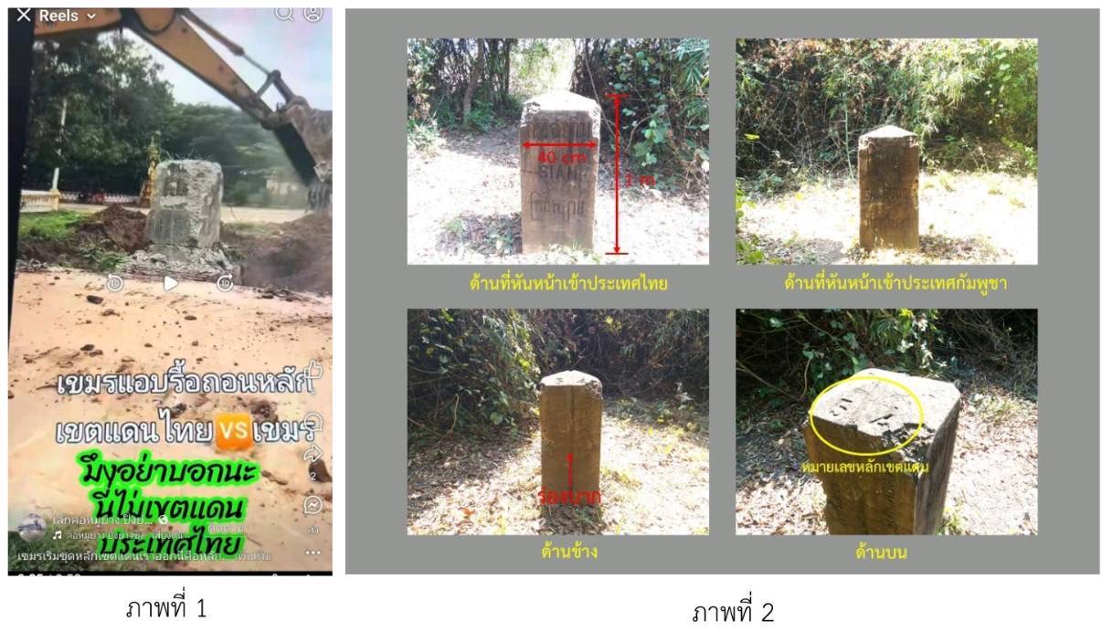 18 สิงหาคม 2568 - พ.ท.หญิง ญดา โชติชูตระกูล ผู้ช่วยโฆษกกองทัพบก กล่าวว่า จากกรณีที่มีคลิปวิดีโอปรากฏในสื่อสังคมออนไลน์ ในลักษณะการใช้รถตักดินทำการรื้อถอนหลักคอนกรีตที่อาจทำให้เกิดความเข้าใจผิดว่าเป็นหลักเขตแดนไทย -กัมพูชานั้น กองทัพบกได้ตรวจสอบข้อมูลกับหน่วยทหารในพื้นที่แล้ว พบว่าภาพหลักคอนกรีตที่ปรากฏในคลิปวีดีโอนั้นไม่ใช่หลักเขตแดนไทย -กัมพูชา ที่สร้างโดยคณะกรรมการปักปัน เขตแดนระหว่างสยามกับฝรั่งเศส ในปี ค.ศ. 1919-1920 (พ.ศ. 2462-2463)