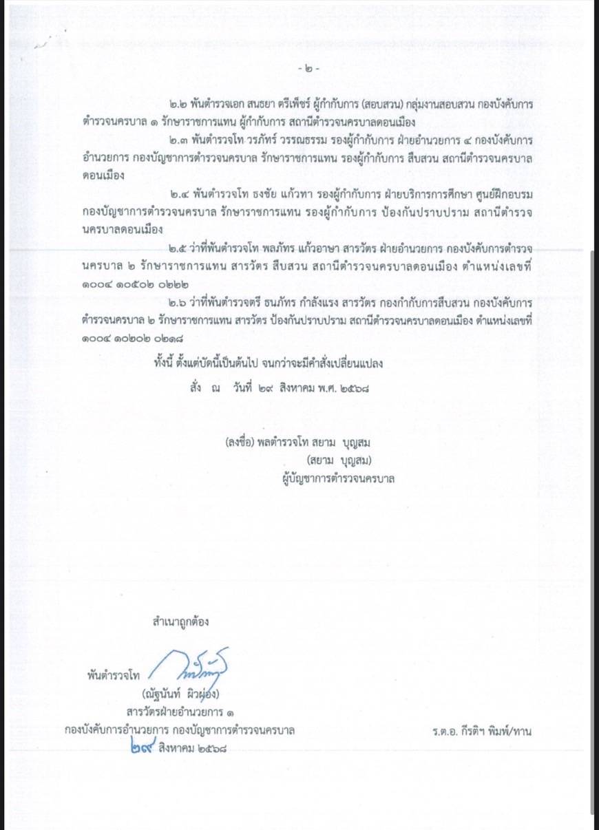2. ข้าราชการตำรวจรักษาราชการแทนตำแหน่งต่าง ๆ ในสังกัดกองบังคับการตำรวจนครบาล 2 จำนวน 6 ราย ได้แก่