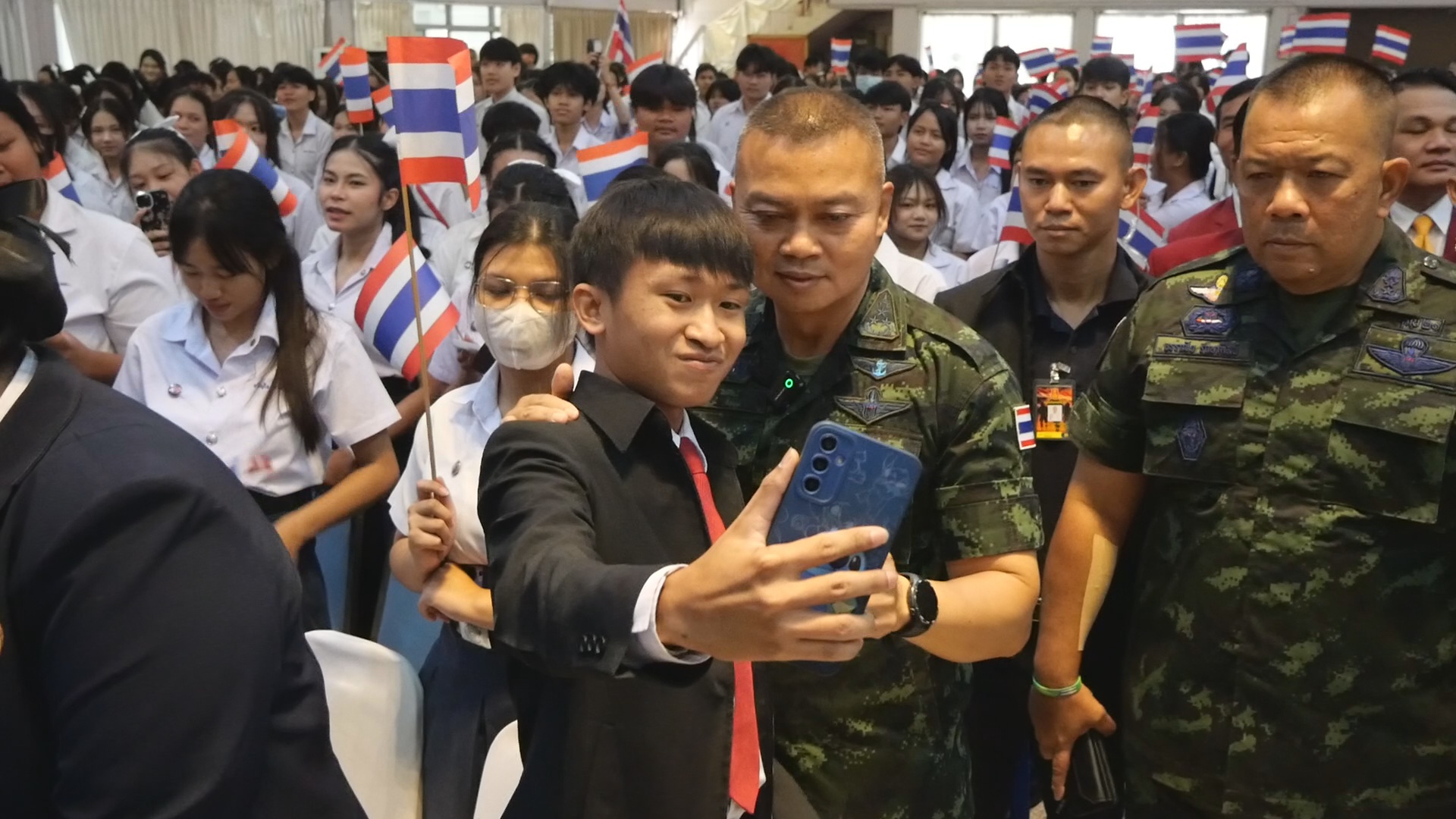แม่ทัพภาคที่ 2 ยันศึกเขมรยังไม่จบ เป็นเพียงแค่หยุดยิงชั่วคราว บรรยายพิเศษนักศึกษาอาชีวะฟัง อย่าอายยืนร้องเพลงสรรเสริญพระบารมีในโรงหนัง เพราะเราร้องเพลงให้กษัตริย์ และบรรพบุรุษที่ปกป้องแผ่นดิน ผมไม่ถนัดร้องเพลง ผมเป็นทหารอาชีพ