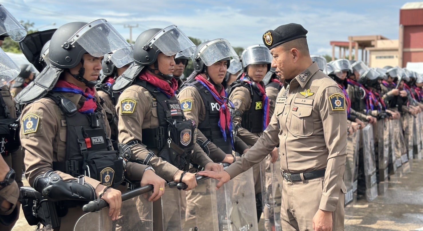 22 ก.ย.2568-พล.ต.ท.ยิ่งยศ เทพจำนงค์ ผู้บัญชาการตำรวจภูธรภาค 2 (ผบช.ภ.2) ตรวจสอบความพร้อมซ้อมการปฏิบัติของตำรวจกองร้อยควบคุมฝูงชน จากตำรวจภูธรจังหวัดสระแก้ว ปราจีนบุรี ฉะเชิงเทรา ชลบุรี และระยอง รวม 1,400 นาย และกำลังจากกองอาสารักษาดินแดนจังหวัดสระแก้ว 80 นาย และตรวจเช็กความพร้อมของยุทโธปกรณ์ในการควบคุมฝูงชน