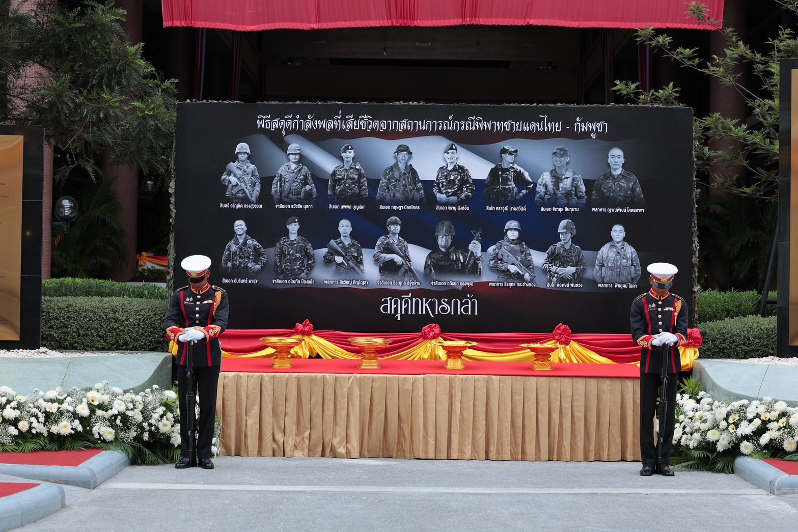 ในโอกาสนี้ พลเอก พนา แคล้วปลอดทุกข์ ผู้บัญชาการทหารบก ได้กล่าวสดุดีและเชิดชูเกียรติกำลังพลที่เสียชีวิตฯ ว่า สถานการณ์กรณีพิพาทบริเวณชายแดนไทย-กัมพูชา เป็นเหตุการณ์สำคัญที่จารึกไว้ในประวัติศาสตร์ของชาติ ที่เหล่าทหารหาญ ได้อุทิศกำลังกาย กำลังใจ ยืนหยัดต่อสู้และยอมสละชีพเพื่อปกป้องเอกราชอธิปไตยของชาติด้วยความองอาจ กล้าหาญ เสียสละ สมเกียรติและศักดิ์ศรีของการเป็นชายชาติทหาร แม้ในสมรภูมิจะเต็มไปด้วยอันตรายและสถานการณ์ความตึงเครียดที่ไม่อาจประเมินได้ แต่ทหารกล้าทั้งหลายไม่ได้ย่อท้อต่อภารกิจ และพร้อมเป็นแนวหน้าปฏิบัติหน้าที่ต่อผู้รุกรานโดยไม่ยอมถอยแม้แต่ก้าวเดียว เพื่อรักษาไว้ซึ่งบูรณภาพแห่งดินแดนให้คนในชาติได้มีแผ่นดินอยู่อาศัย เพื่อความสงบสุขร่มเย็น