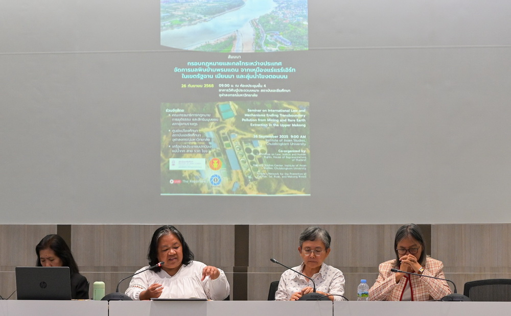 26 กันยายน 2568 - ที่จุฬาลงกรณ์มหาวิทยาลัย กทม.คณะกรรมาธิการกฎหมาย การยุติธรรมและสิทธิมนุษยชน สภาผู้แทนราษฎร ศูนย์แม่โขงศึกษาสถาบันเอเชียศึกษา จุฬาฯ เครือข่ายประชาชนปกป้องแม่น้ำกก สาย รวก โขง ร่วมกันจัดสัมมนาเรื่องกรอบกฏหมายและกลไกระหว่างประเทศจัดการมลพิษข้ามพรมแดนจากเหมืองแร่แรร์เอิร์ทในเขตรัฐฉาน ประเทศพม่าและลุ่มแม่น้ำโขงตอนบน