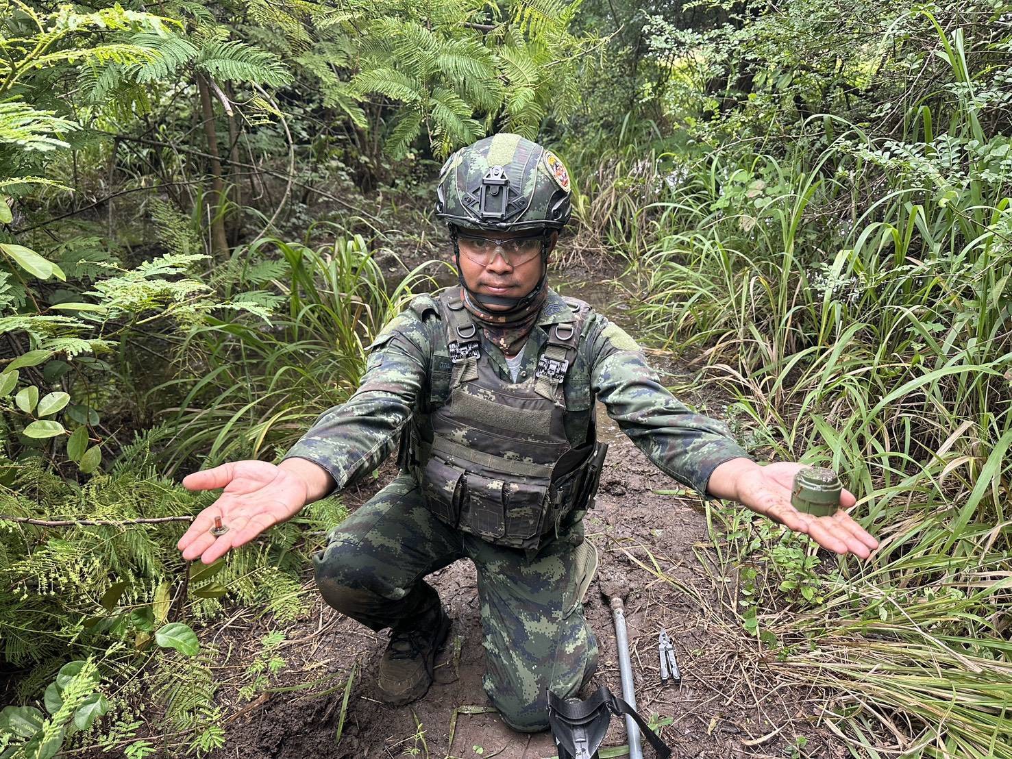 โดยตั้งแต่เริ่มปฏิบัติภารกิจ มาตั้งแต่ วันที่ 10 ต.ค. 68 - 13 ต.ค.68 ตรวจพบ ทุ่นระเบิดสังหารบุคคล รวมแล้ว 7 ทุ่น แยกเป็นชนิดระเบิดอยู่กับที่ PMN สภาพพร้อมใช้งาน ทั้ง 6 ทุ่น และ ทุ่นระเบิดชนิดอยู่กับที่ MN79 สภาพพร้อมใช้งาน 1 ทุ่น