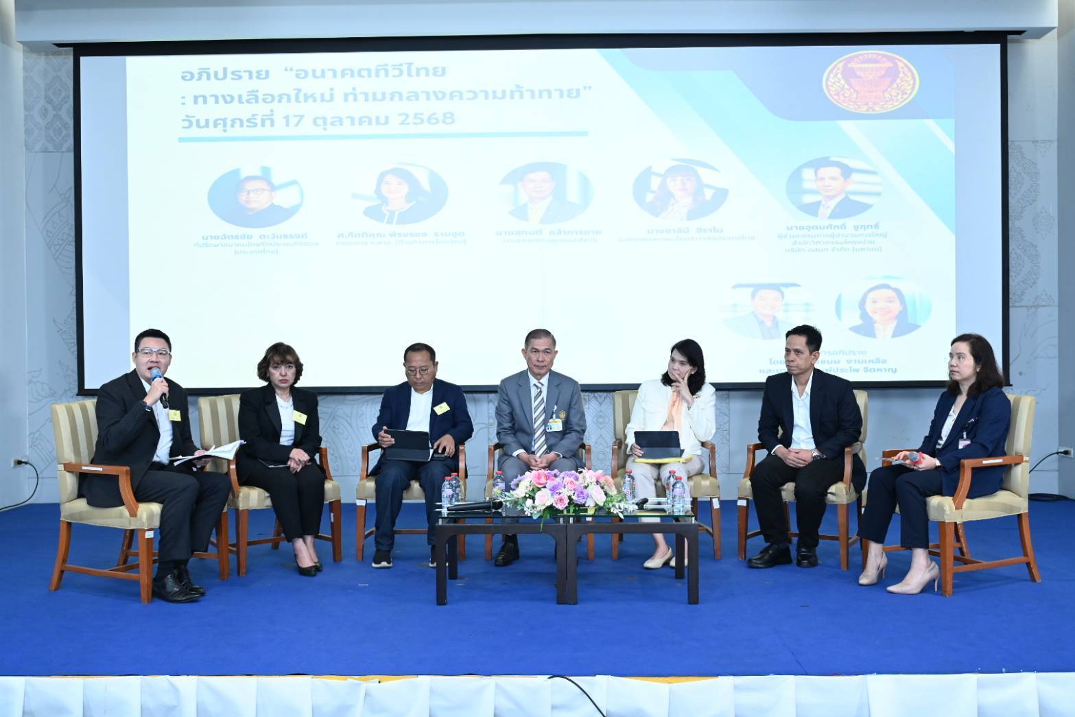นอกจากนี้ยังมีการอภิปรายในหัวข้อ “อนาคตทีวีไทย : ทางเลือกใหม่ ท่ามกลางความท้าทาย” โดยมี นายสุทนต์ กล้าการขาย เป็นผู้ดำเนินรายการ ร่วมด้วยผู้ทรงคุณวุฒิจากหลากหลายสาขา ได้แก่ ศาสตราจารย์กิตติคุณ พิรงรอง รามสูต กรรมการ กสทช. ด้านกิจการโทรทัศน์ นายฉัตรชัย ตะวันธรงค์ ที่ปรึกษาสมาคมโทรทัศน์ระบบดิจิทัล (ประเทศไทย) นายอุดมศักดิ์ ชูฤทธิ์ ผู้ช่วยกรรมการผู้อำนวยการใหญ่ สำนักวิศวกรรมโครงข่าย บริษัท อสมท จำกัด (มหาชน) และนาง ชาลินี ฮิราโน รองนายกสมาคมโฆษณาแห่งประเทศไทย โดยผู้ร่วมอภิปรายได้แลกเปลี่ยนมุมมองอย่างเข้มข้น ทั้งในด้านการพัฒนาโครงสร้างโครงข่าย การปรับตัวของสถานีโทรทัศน์ต่อการแข่งขันจากแพลตฟอร์มออนไลน์ รวมถึงแนวทางสร้างระบบนิเวศสื่อใหม่ที่เปิดโอกาสให้ทุกฝ่ายอยู่รอดได้อย่างเป็นธรรม