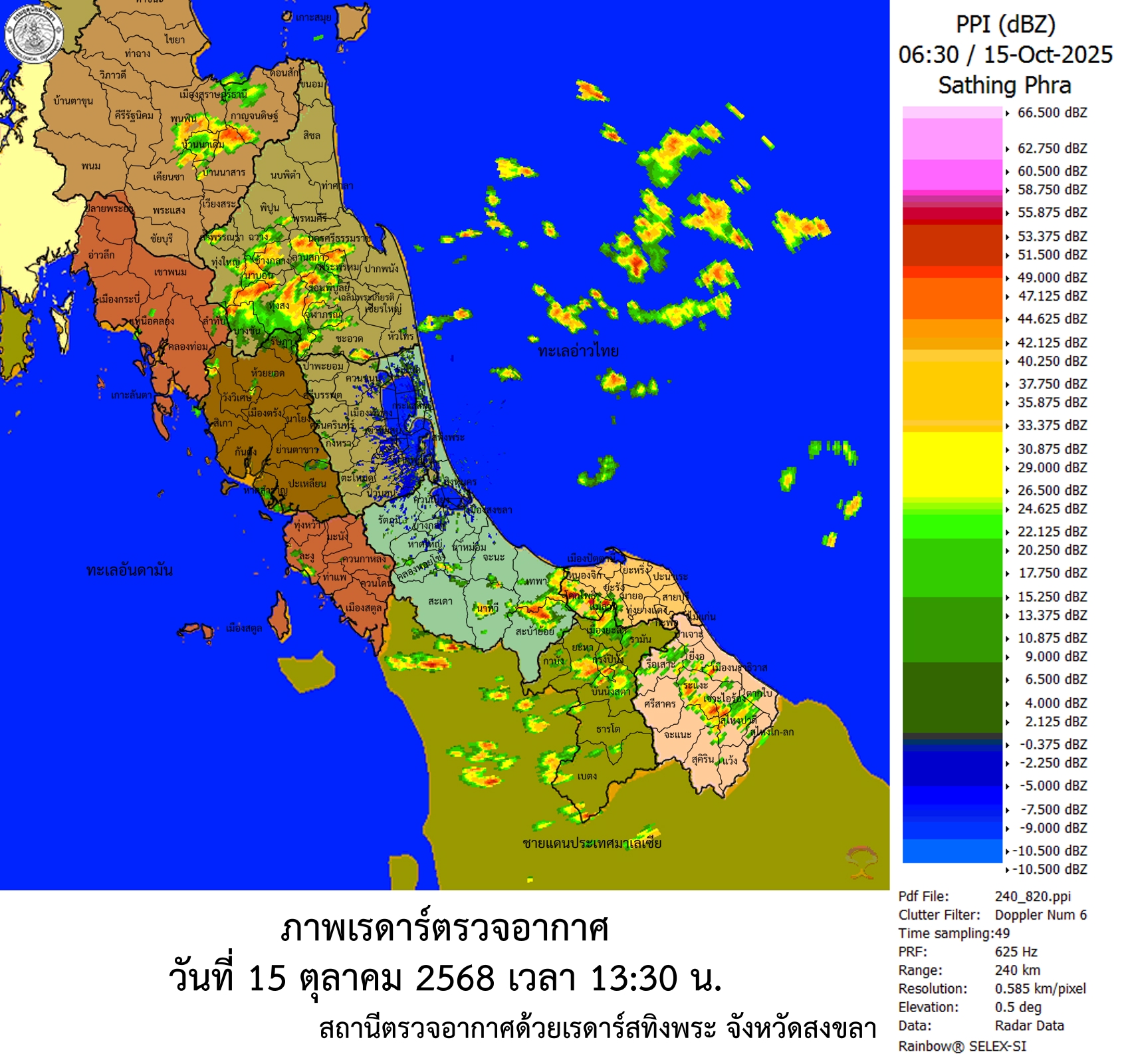 21 ต.ค. 2568- เมื่อเวลา 05.00 น. นายกมล พรหมสาขา ณ สกลนคร ผู้อำนวยการศูนย์อุตุนิยมวิทยาภาคใต้ฝั่งตะวันออก ประกาศศูนย์อุตุนิยมวิทยาภาคใต้ฝั่งตะวันออก ฉบับที่ 2 (53/2568) เรื่อง ฝนตกหนักถึงหนักมากบริเวณภาคใต้ฝั่งตะวันออก มีผลกระทบในช่วงวันที่ 23-26 ตุลาคม 2568