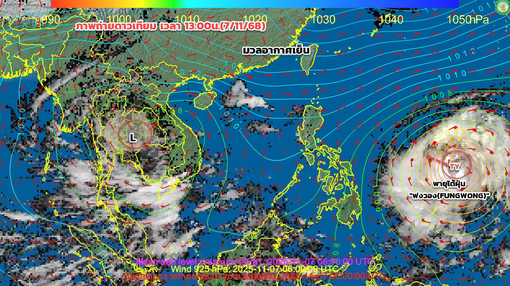 ในขณะที่พายุไต้ฝุ่น "ฟงวอง (FUNGWONG)" ในมหาสมุทรแปซิฟิก (ทางตะวันออกของฟิลิปปินส์) กำลังเคลื่อนตัวทางตะวันตกเฉียงเหนือ คาดว่าจะเคลื่อนผ่านเกาะลูซอลประเทศฟิลิปปินส์ แล้วเคลื่อนตัวไปทางตะวันออกของประเทศจีนหรือขึ้นไปทางทิศเหนือทางเกาะไต้หวัน