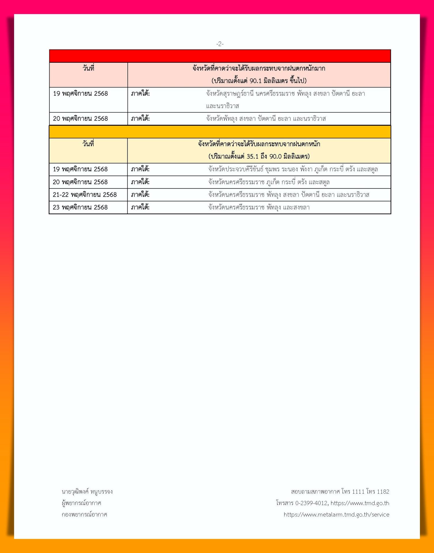 กรมอุตุนิยมวิทยาจะออกประกาศฉบับต่อไปในวันที่ 19 พฤศจิกายน พ.ศ. 2568 เวลา 17.00 น.
