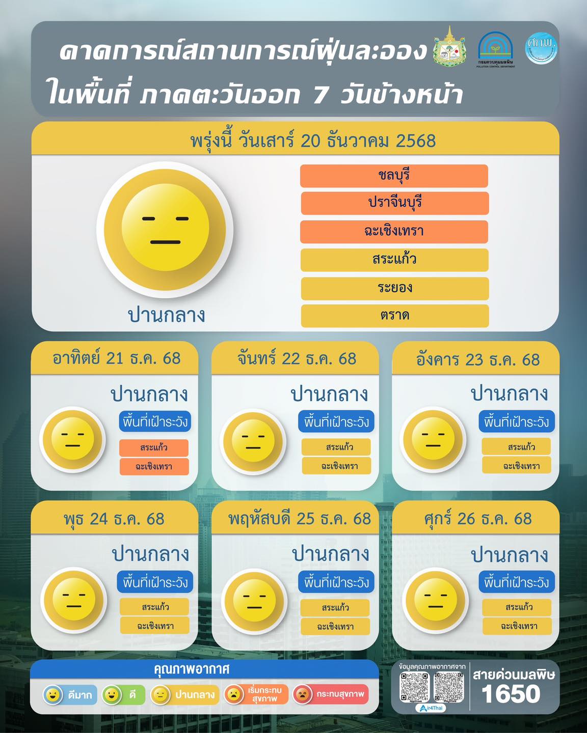 ภาคตะวันออก มีแนวโน้มเพิ่มขึ้นวันที่ 20 – 26 ธ.ค. 2568 และยังคงต้องเฝ้าระวังบางพื้นที่