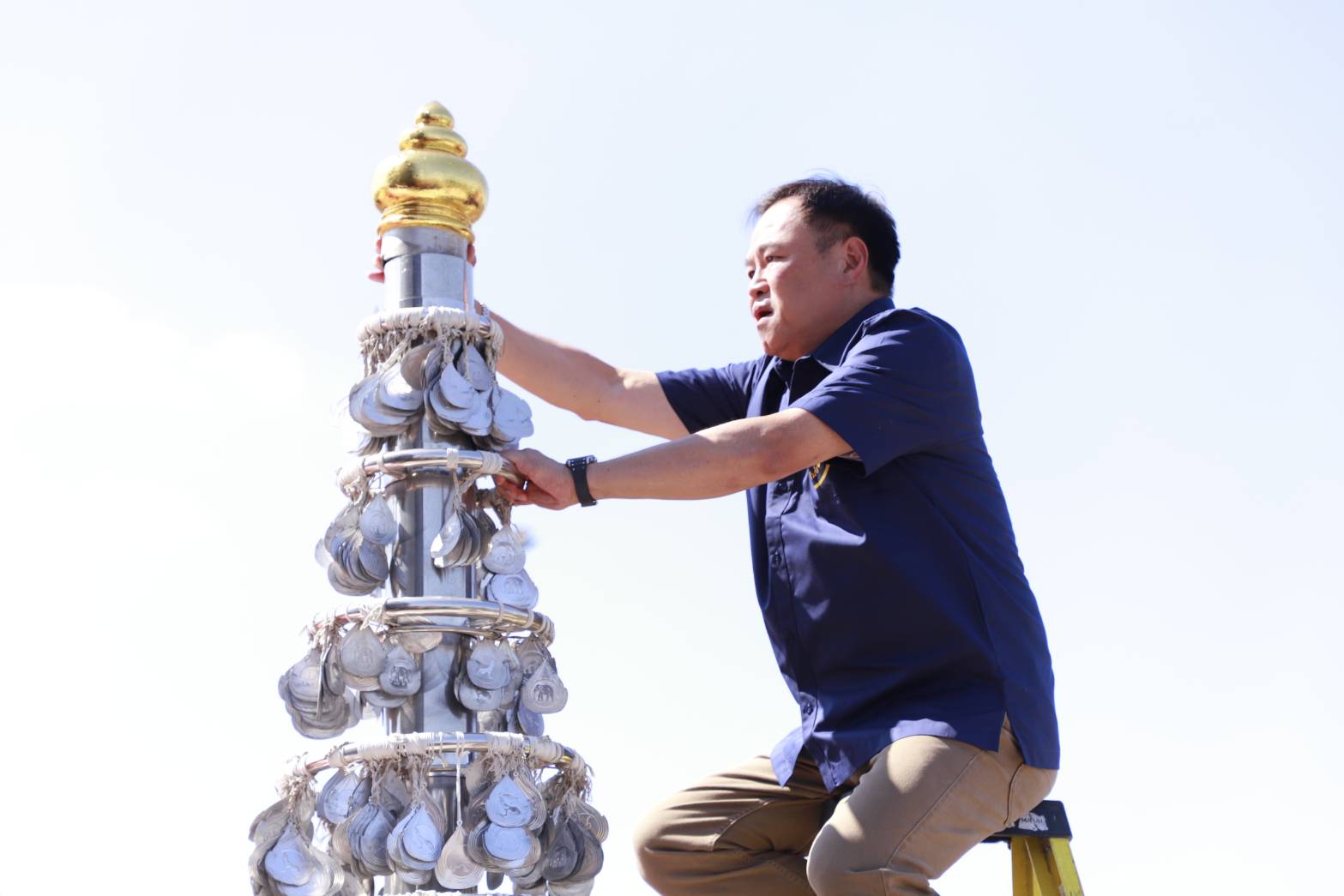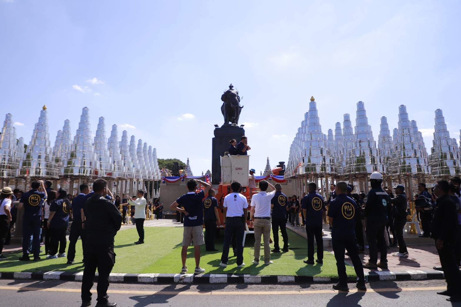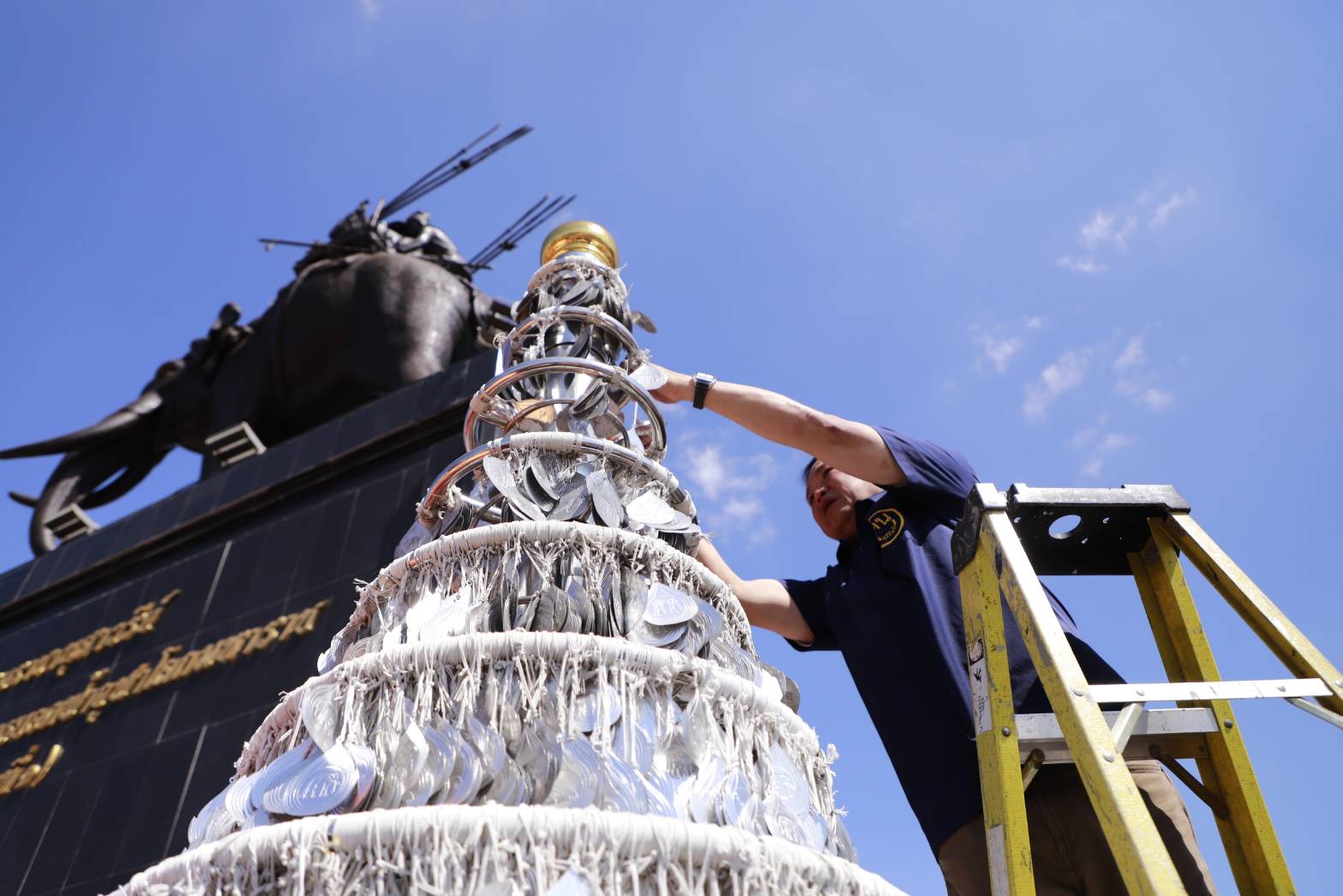 "อนุทิน" ควง "จ๋า-ธนนนท์" สวมเสื้อฅนบุรีรัมย์สีน้ำเงิน "เนวิน-อดุลย์-เพิ่มพูน-ศักดิ์สยาม" พร้อมส่วนราชการ ภาคเอกชน ประชาชนและนักท่องเที่ยว ร่วมพิธียกยอดฉัตร 9 ชั้น ทั้ง 364 ต้นรอบพระบรมราชานุสาวรีย์ รัชกาลที่ 1 สวมกลับที่เดิมหลังนำลงมาให้ประชาชนและนักท่องเที่ยวปิดทอง เสริมสิริมงคลช่วงเทศกาลปีใหม่ โดยอนุทิน เลือกยกยอดฉัตรต้นที่ 37 สวมกลับเข้าที่เดิมและปิดทอง