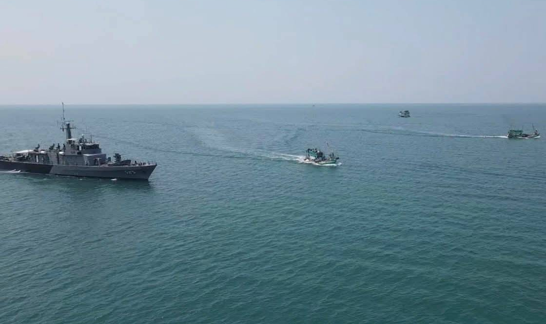 ผู้สื่อข่าวรายงานด้วยว่า ก่อนหน้านี้ เมื่อวันที่ 9 ก.พ. 69 เรือประมงสัญชาติกัมพูชา 25 ลำ รุกล้ำเส้นแบ่งเขตแดนไทย-กัมพูชา ล้ำเข้ามาราว 1 ไมล์ทะเล บริเวณเกาะกูด จ.ตราด ก่อนถูก เรือ ต.996 และเรือ ต.265 ขับไล่ออกจากพื้นที่.