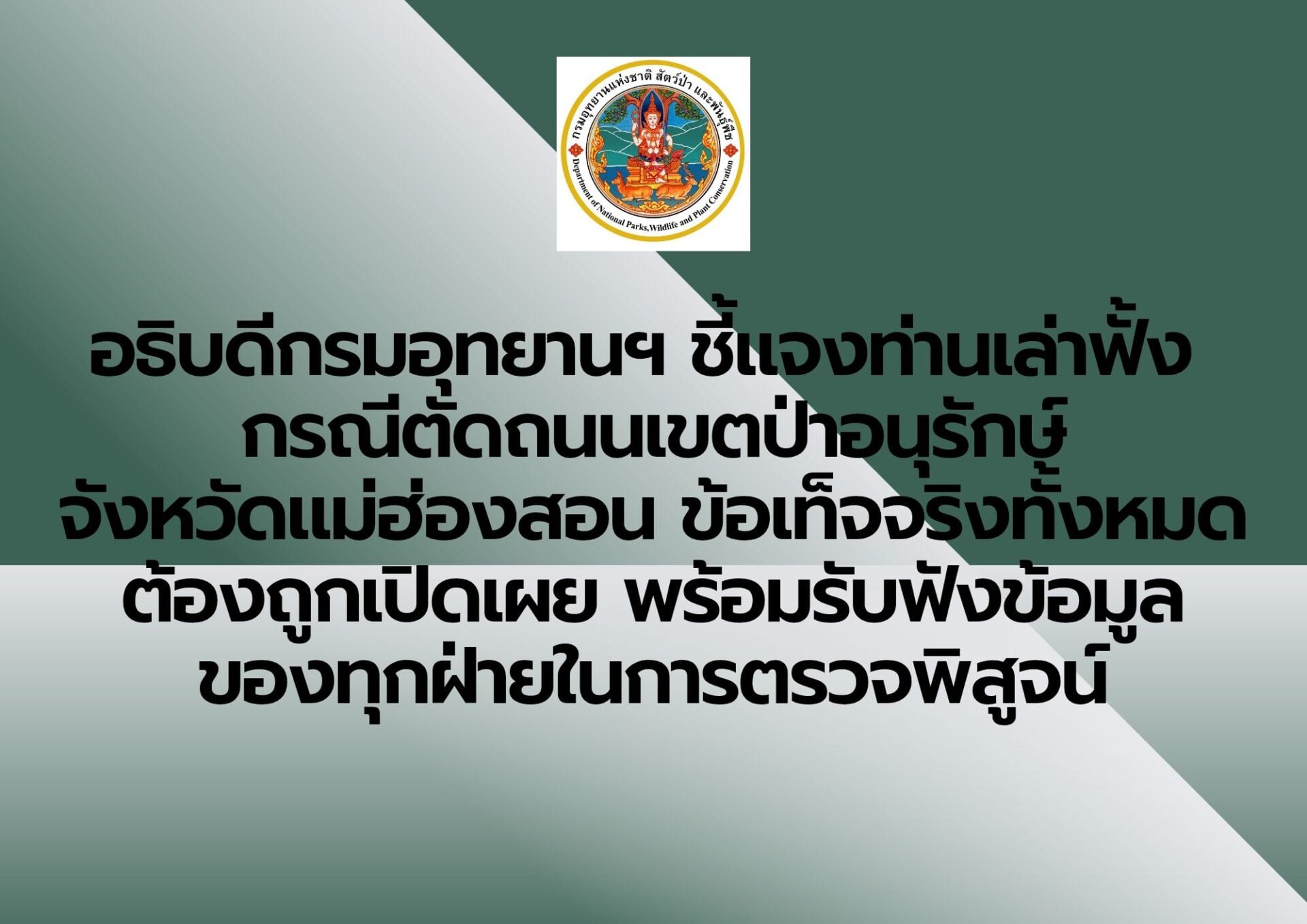 “อธิบดีกรมอุทยานฯ แจง “เล่าฟั้ง” กรณีตัดถนนเขตป่าอนุรักษ์จังหวัดแม่ฮ่องสอน ข้อเท็จจริงทั้งหมดต้องถูกเปิดเผย พร้อมรับฟังข้อมูลของทุกฝ่ายในการตรวจพิสูจน์