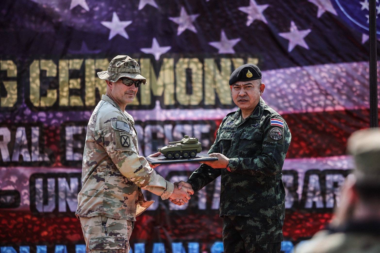 พลเอก อุกฤษฎ์ บุญตานนท์ ผู้บัญชาการทหารสูงสุด พร้อมด้วย นาย ฌอน เค. โอนีลล์ (SEAN K. O’NEILL) เอกอัครราชทูตสหรัฐอเมริกาประจำประเทศไทย และพลตรี วิลเลี่ยม เจ.เพรนเดอร์แกสต์ที่ 4 (MG William J. Prendergast IV) ผู้บัญชาการกองพลทหารราบที่ 40 สหรัฐอเมริกา กองกำลังรักษาดินแดน รัฐแคลิฟอร์เนีย เข้าร่วมในพิธีปิดการฝึกร่วม