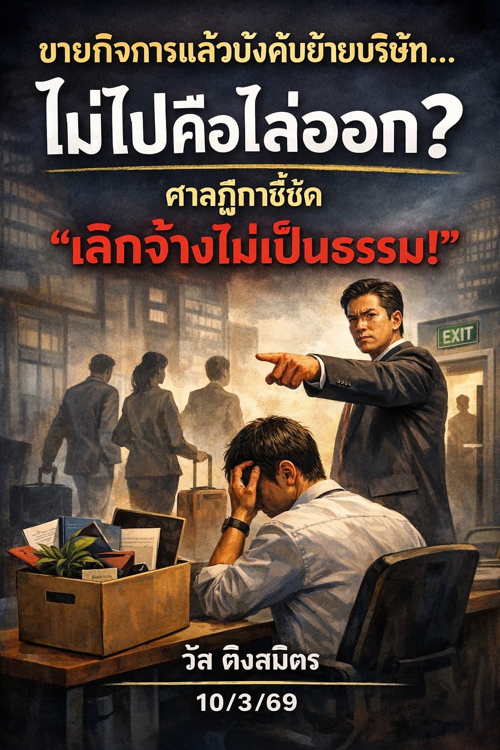 10 มี.ค. 2569 นายวัส ติงสมิตร นักวิชาการอิสระ และอดีตผู้พิพากษาอาวุโสในศาลฎีกา โพสต์เฟซบุ๊กว่า ขายกิจการแล้วบังคับย้ายบริษัท… ไม่ไปคือไล่ออก? ศาลฎีกาชี้ชัด “เลิกจ้างไม่เป็นธรรม!”