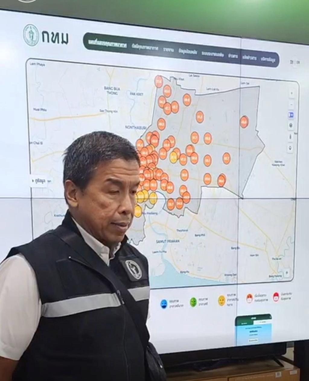 ผู้ว่าฯ ชัชชาติ กล่าวว่า สถานการณ์ฝุ่นในพื้นที่กรุงเทพมหานครวันนี้กลับมาสูงขึ้น พบค่าฝุ่นสีส้มประมาณ 40 เขต โดยสาเหตุหลักมาจากเมื่อคืนที่ผ่านมาช่วงเวลาประมาณ 22.00 น. ทิศทางลมเกิดการเปลี่ยนแปลง จากเดิมที่เป็นลมใต้ซึ่งอากาศดี เปลี่ยนเป็นลมตะวันออกซึ่งพัดผ่านจุดที่มีการเผาไหม้และนำพาฝุ่นเข้ามาในพื้นที่ โดยเฉพาะเขตฝั่งตะวันออกอย่างเขตลาดกระบัง ซึ่งยืนยันว่าฝุ่นที่เพิ่มขึ้นในช่วงกลางคืนนี้ไม่ได้มาจากรถยนต์เนื่องจากปริมาณการจราจรน้อย แต่มาจากปัจจัยภายนอกและการเปลี่ยนทิศของลม