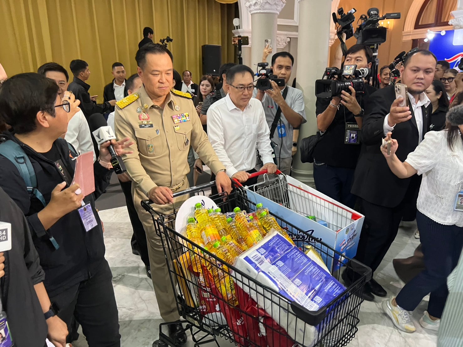 ซึ่งตนต้องขอขอบพระคุณรัฐมนตรีว่าการกระทรวงพาณิชย์ ปลัดกระทรวงพาณิชย์ อธิบดี และพี่น้องข้าราชการทุกคน ซึ่งทราบดีว่าทุกคนได้ใช้ความพยายามเป็นอย่างยิ่งที่จะจัดหาสินค้าเหล่านี้ที่เป็นสินค้า House Brand (เฮ้าส์แบรนด์) และ Second-tier Brand (สินค้าแบรนด์รอง) ซึ่งเป็นสินค้าทางเลือกที่มีคุณภาพ ราคาสมเหตุสมผล ให้พี่น้องจับต้องได้ง่าย