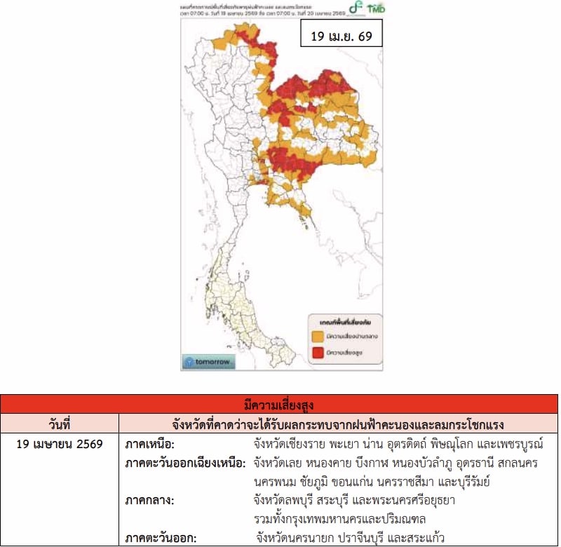 กรมอุตุนิยมวิทยา ออกประกาศเรื่อง พายุฤดูร้อนบริเวณประเทศไทยตอนบน (มีผลกระทบตั้งแต่วันที่ 16-20 เมษายน 2569) ฉบับที่ 4