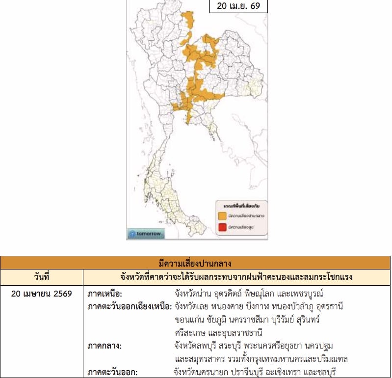 เช็กที่นี่! กรมอุตุฯ อัปเดต 'พายุฤดูร้อน' 16-20 เม.ย. ถล่มจังหวัดใดบ้างระดับเสี่ยงสูง-ปานกลาง