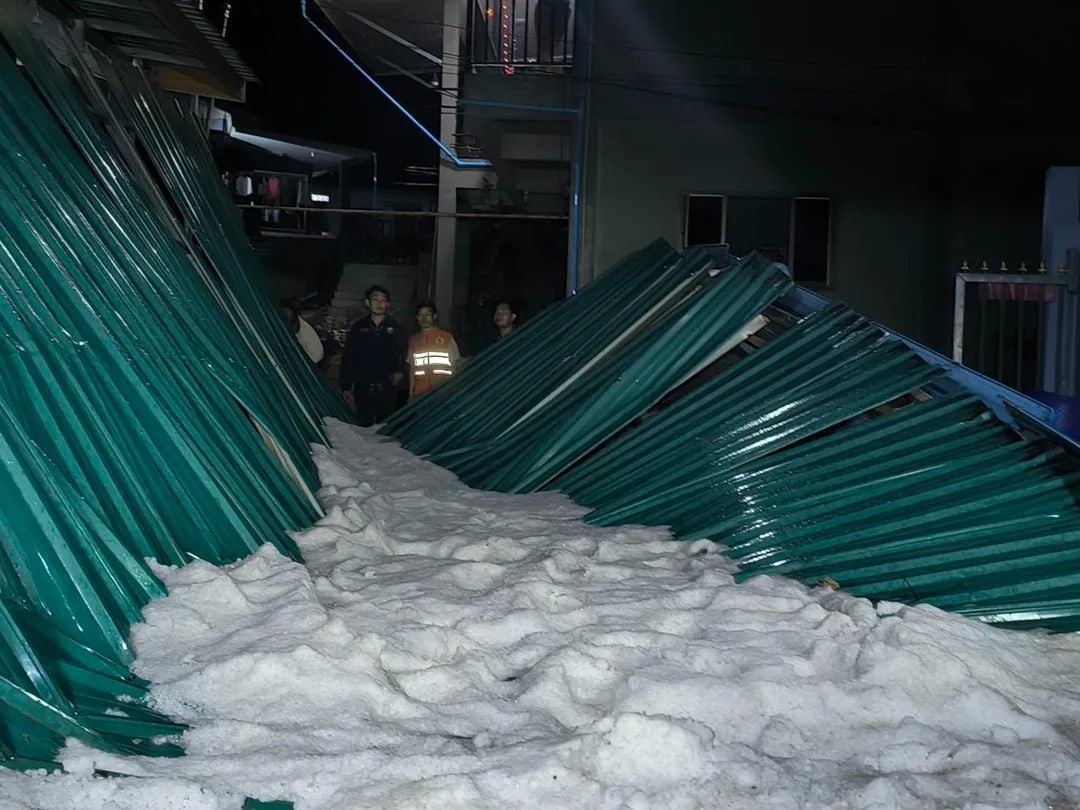 พายุฤดูร้อน-ลูกเห็บถล่ม อ.ฝาง ขาวโพลนทั้งหมู่บ้าน พบความเสียหายกว่า 50 หลัง