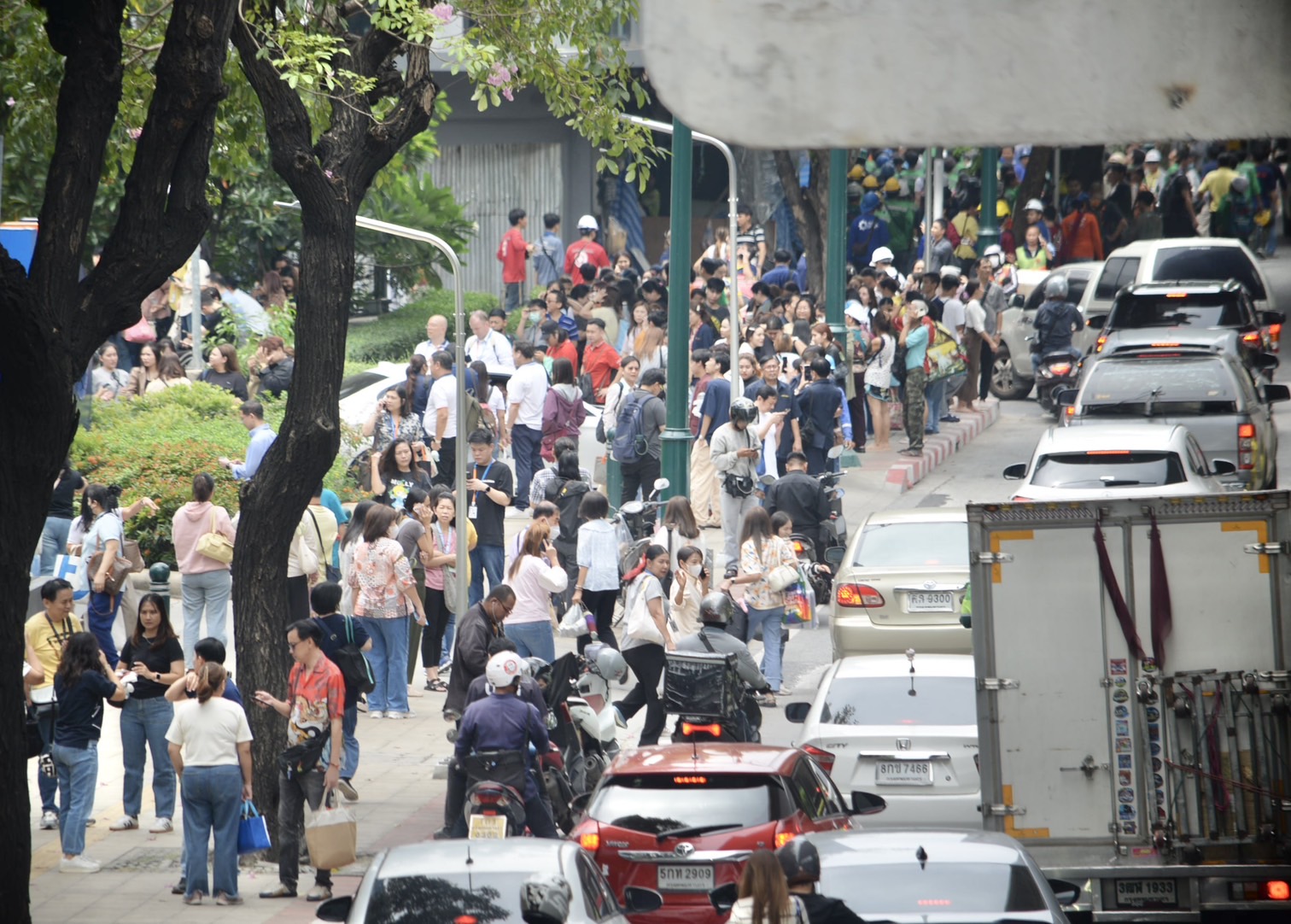 • ประมาณ 10.00 น.: มีรายงานว่าหลายอาคารในพื้นที่กรุงเทพฯ รับรู้ถึงแรงสั่นสะเทือน ส่งผลให้เกิดความกังวลและการอพยพประชาชนในบางอาคารเพื่อความปลอดภัย