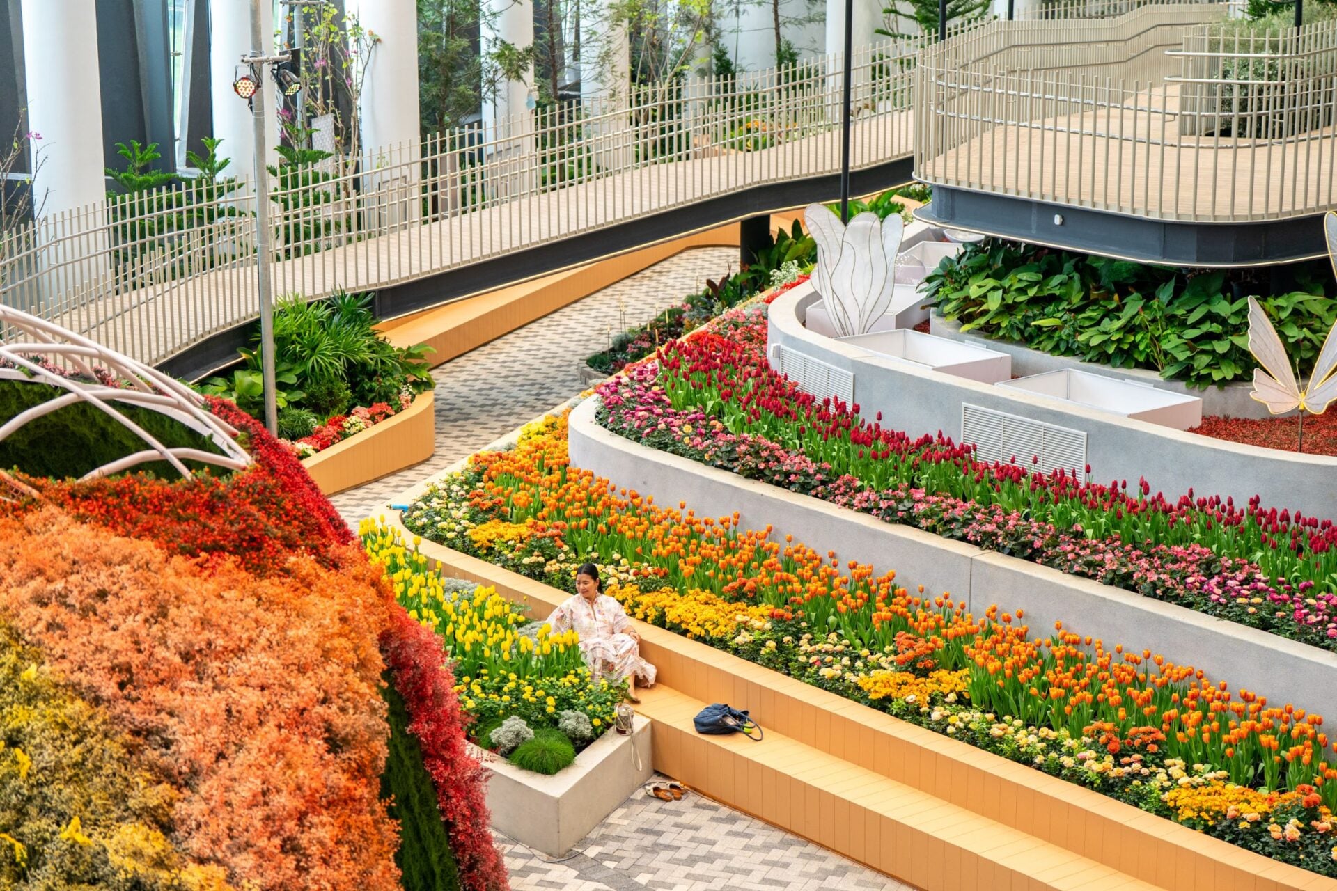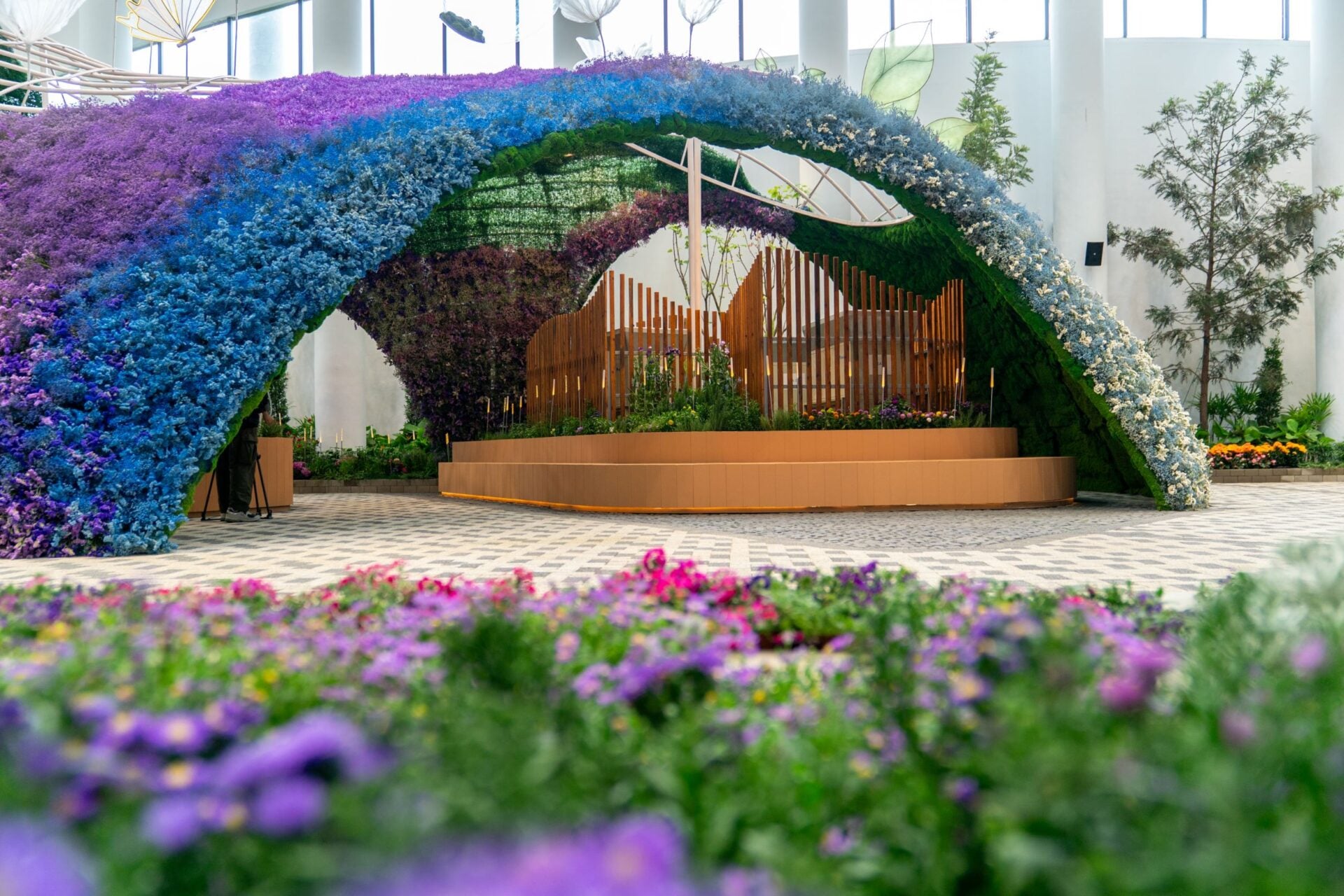 ทั้งนี้การนำเสนอ The Blooming Spectrum ที่จัดแสดงพรรณไม้เมืองหนาวและพันธุ์ไม้เมืองไทยที่เรียงตามเฉดสีของสเปกตรัม แบ่งตามเฉดสี ดังนี้ เริ่มจากโซน แรก สีแดง Forest Infra-Red Spectrum ไม้ยืนต้นที่สวยงามและทรงคุณค่า และดอกไม้เมืองร้อนโทนสีแดง สีส้ม Cascading Spectrum แปลงดอกไม้ไล่เฉดสี พร้อมโดมดอกไม้อบแห้งที่ให้ความรู้สึกอบอุ่น สีเหลือง Fragrance Dome รวบรวมเหล่าดอกไม้ที่มีกลิ่นหอมฟุ้ง ในโทนสีเหลืองสดใส สีฟ้า/น้ำเงิน Wisdom Dome – edible flowers รวบรวมดอกไม้ทานได้ ที่นิยมใช้ตกแต่งในเมนูอาหารต่าง ๆ
