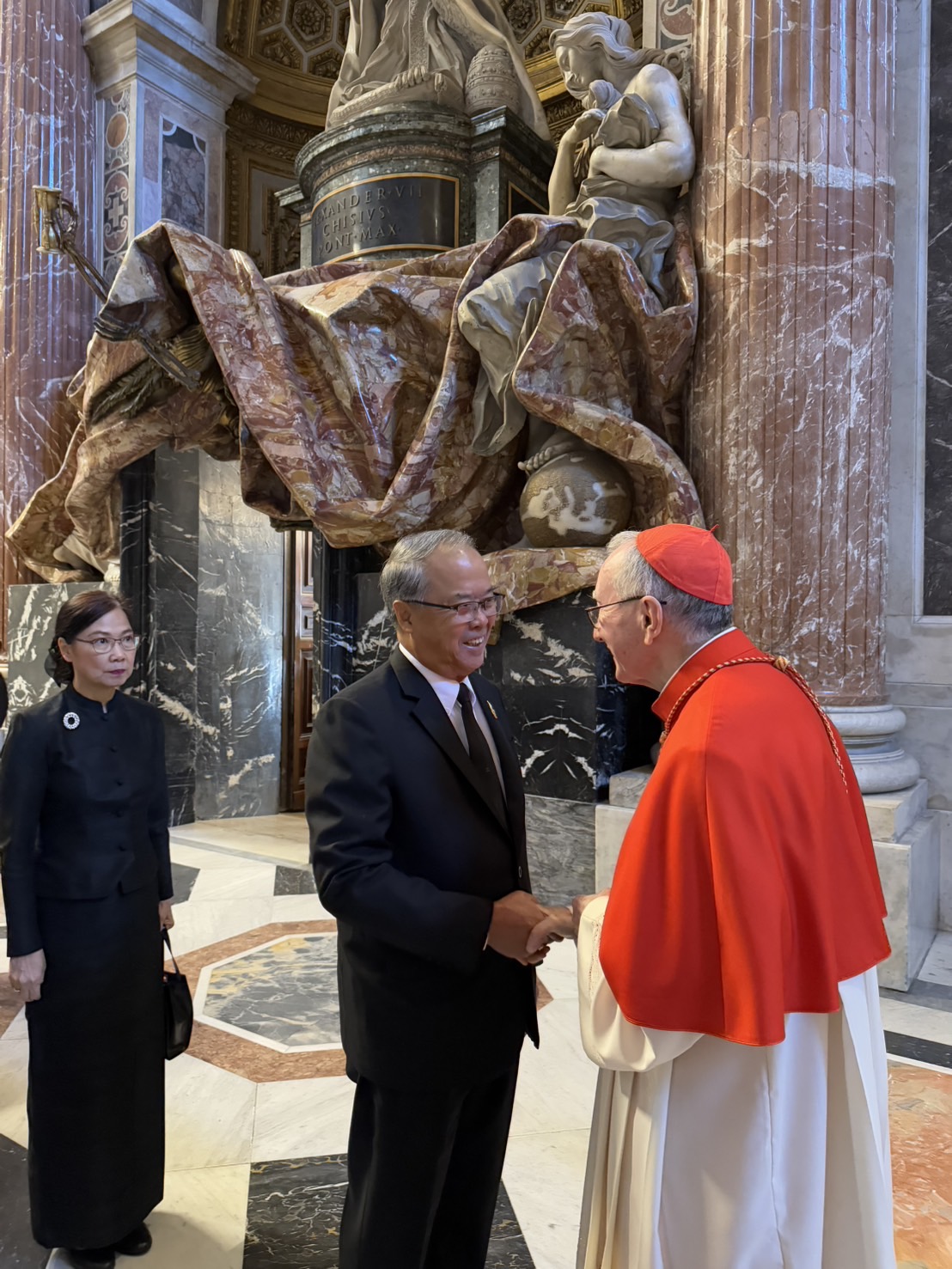 อนึ่ง ในช่วงเมื่อวันที่ 25 เมษายน 2568 คณะผู้แทนพิเศษได้พบกับ พระคาร์ดินัลฟรังซิสเซเวียร์ เกรียงศักดิ์ โกวิทวาณิช ที่นครรัฐวาติกันด้วย โดยภารกิจในครั้งนี้มีผู้แทนจากนครรัฐวาติกันมารับที่สนามบิน / และมีรถตำรวจนำขบวน อำนวยความสะดวกคณะผู้แทนพิเศษของรัฐบาลไทยตลอดภารกิจ.