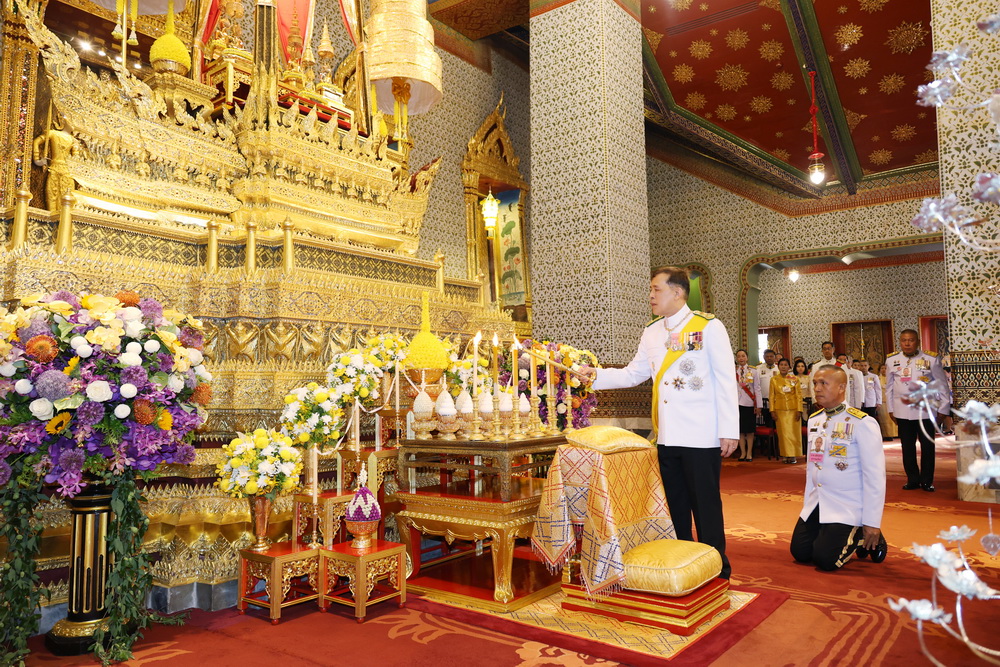 จบแล้ว ถวายอดิเรก ถวายพระพรลา พระบาทสมเด็จพระเจ้าอยู่หัว เสด็จพระราชดำเนินไปทรงกราบพระพุทธปฏิมาชัยวัฒน์ รัชกาลที่ 1 ถึงรัชกาลที่ 7 และรัชกาลที่ 9 ที่หน้าพระที่นั่งบุษบกมาลา ทรงรับการถวายความเคารพของผู้มาเฝ้าทูลละอองธุลีพระบาท แล้วเสด็จออกจากพระที่นั่งอมรินทรวินิจฉัย ไปประทับรถยนต์พระที่นั่งเสด็จพระราชดำเนินกลับ