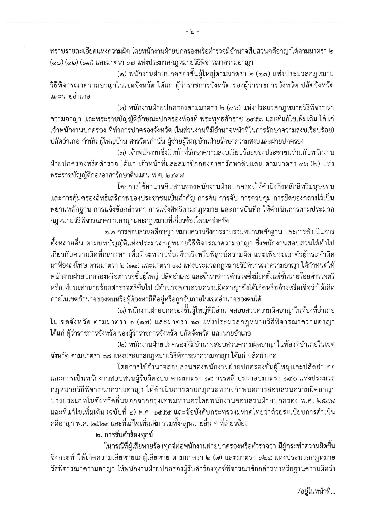 ดังนั้นเพื่อประโยชน์ต่อการคุ้มครองประชาชน จึงมีแนวปฏิบัติหน้าที่ ให้ผู้ว่าราชการจังหวัด รองผู้ว่าราชการจังหวัด ปลัดจัดหวัด นายอำเภอ รวมถึงปลัดอำเภอ กำนัน ผู้ใหญ่บ้าน ผู้ช่วยผู้ใหญ่บ้าน เจ้าหน้าที่ และสมาชิก กองอาสารักษาดินแดน ให้ยึดแนวปฏิบัติ และการรับคำร้องทุกข์ ตามประมวลกฎหมายวิธีพิจารณาความอาญา