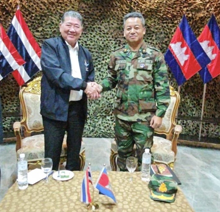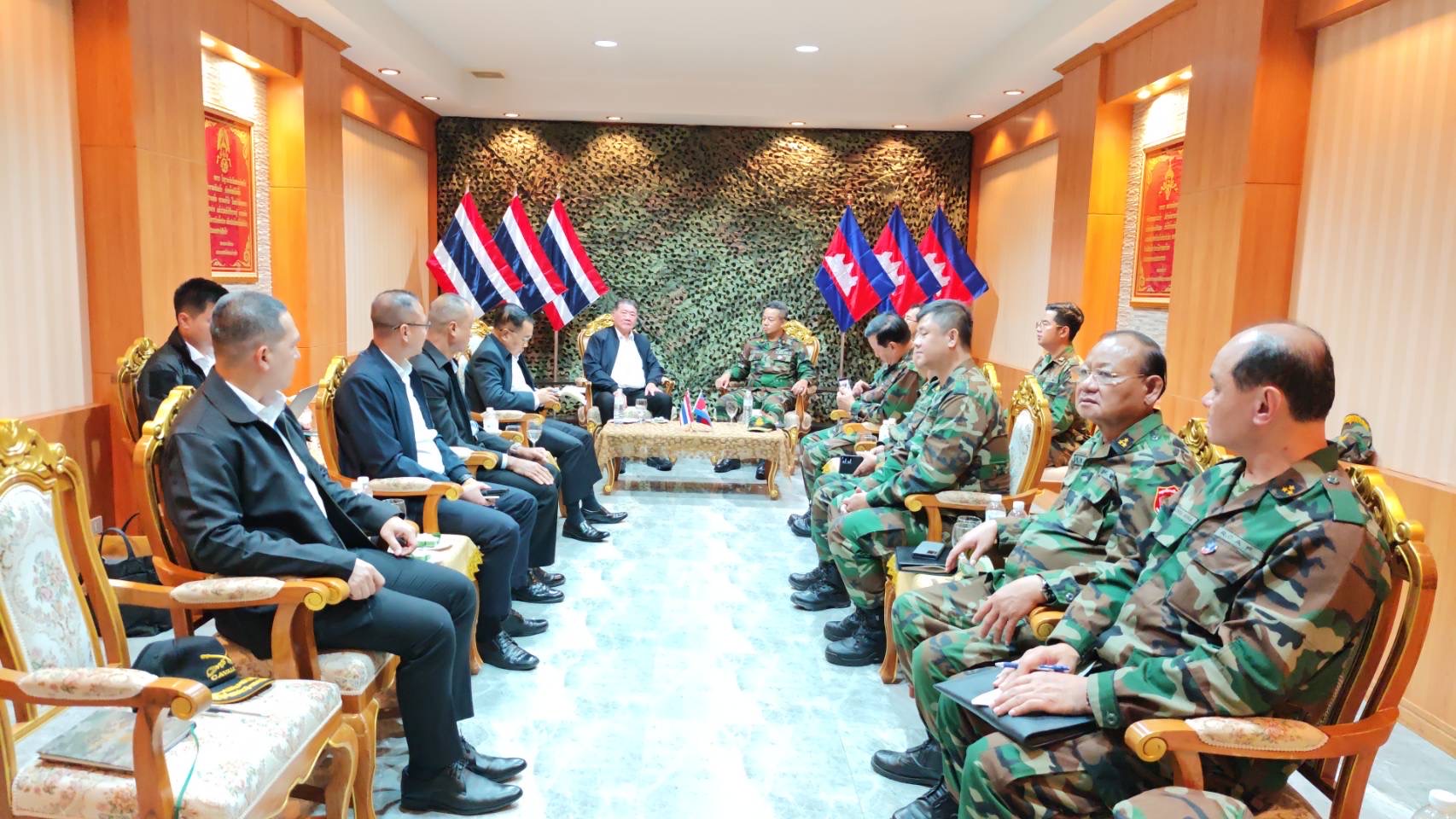 5 มิถุนายน 2568 - ที่ค่ายสุรสิงหนาท จังหวัดสระแก้ว ในวันนี้ นายภูมิธรรม เวชยชัย รองนายกรัฐมนตรีและรัฐมนตรีว่าการกระทรวงกลาโหม พร้อมด้วย พลเอก ณัฐพล นาคพาณิชย์ รัฐมนตรีช่วยว่าการกระทรวงกลาโหม พลเอก ธงชัย รอดย้อย เสนาธิการทหารบก และคณะ ได้เข้าร่วมหารือกับ พลเอก เตีย เซ็ยฮา (Tea Seiha) รองนายกรัฐมนตรีและรัฐมนตรีว่าการกระทรวงกลาโหมกัมพูชา พลเอก เอต สารัช (Eth Sarath) รองผู้บัญชาการทหารสูงสุดและเสนาธิการร่วม พลเอก เมา โซพาน (Mao Sophan) รองผู้บัญชาการทหารสูงสุดและผู้บัญชาการทหารบกกัมพูชา และคณะ