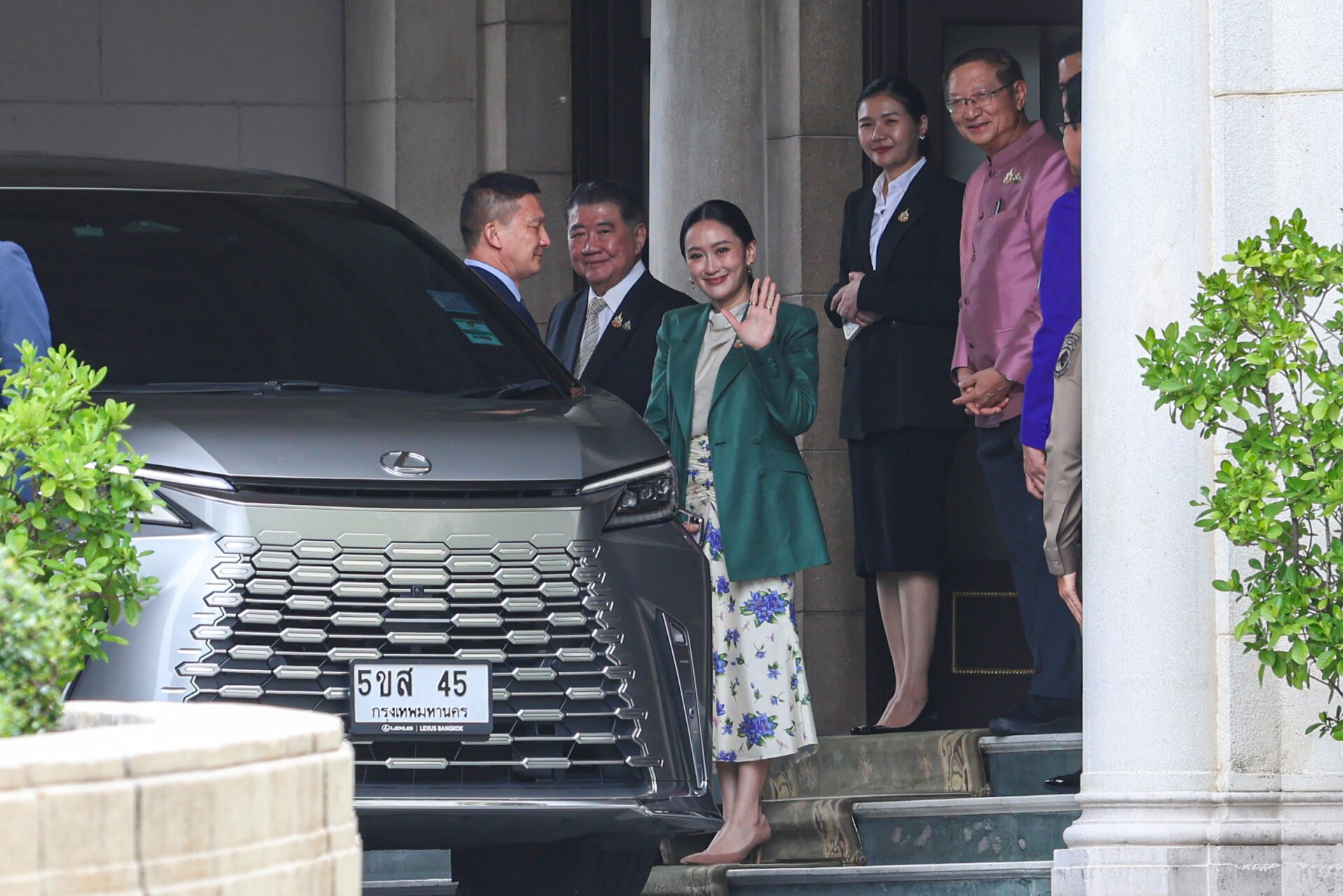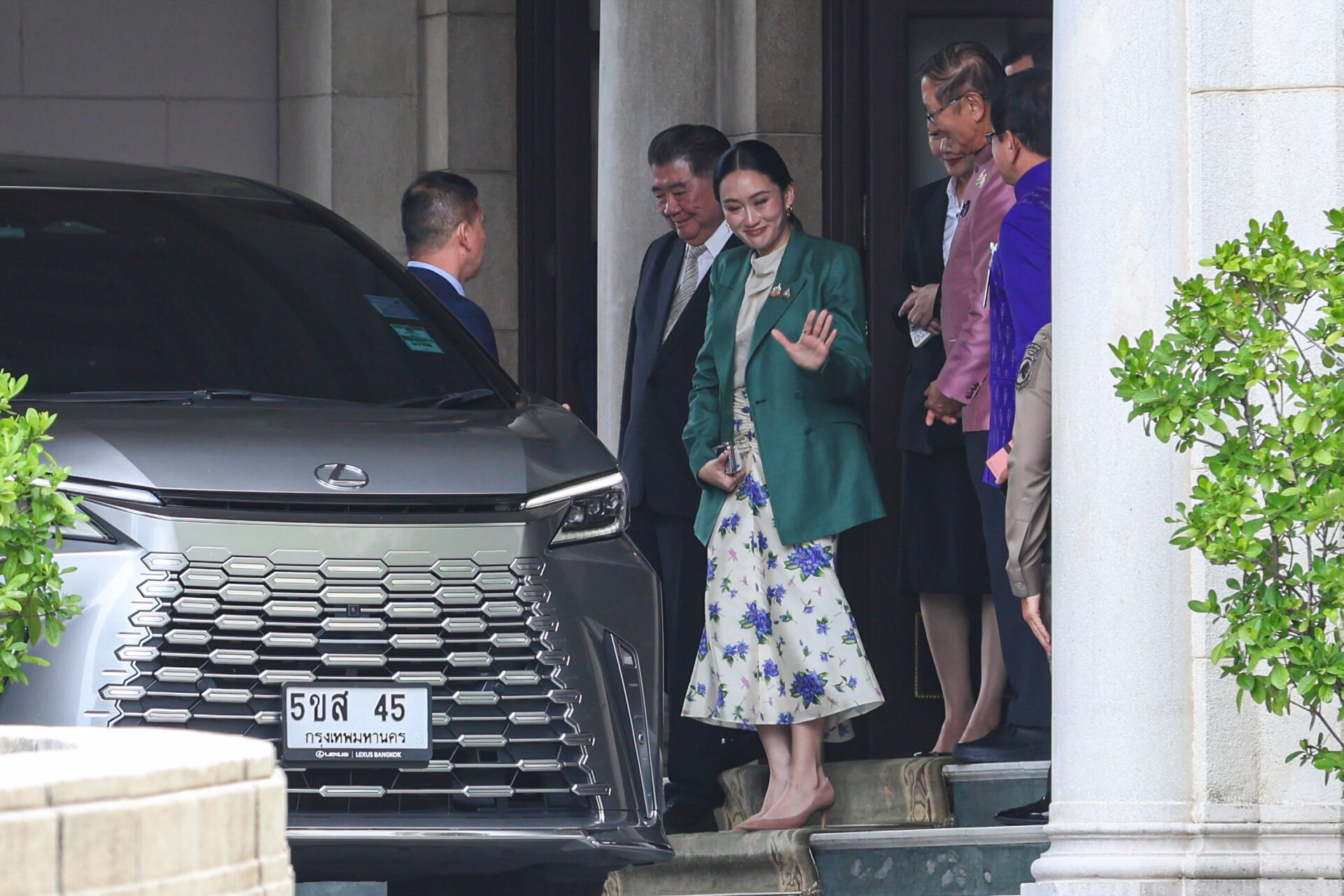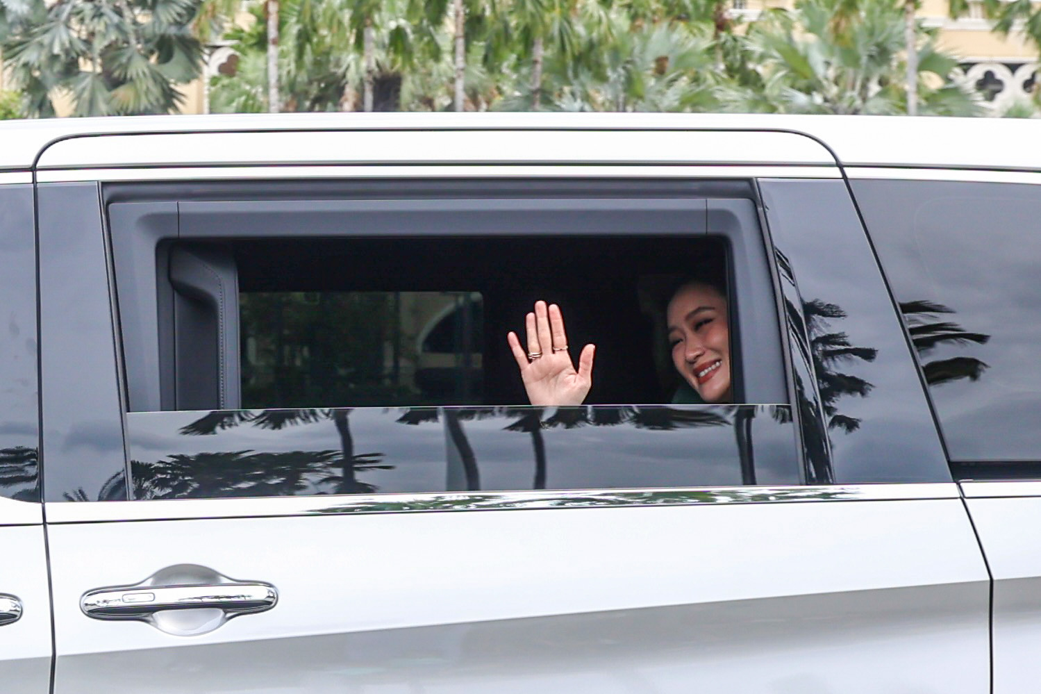 เมื่อผู้สื่อข่าวตะโกนเรียก น.ส.แพทองธารได้หันมายิ้มให้สื่อมวลชน ยกมือไหว้สวัสดีและโบกมือให้ ก่อนที่ขบวนรถยนต์ผ่านสื่อมวลชน น.ส.แพทองธารได้ลดกระจกรถยนต์ลง โบกมือและยิ้มให้ผู้สื่อข่าวอีกครั้ง ก่อนออกจากทำเนียบฯ