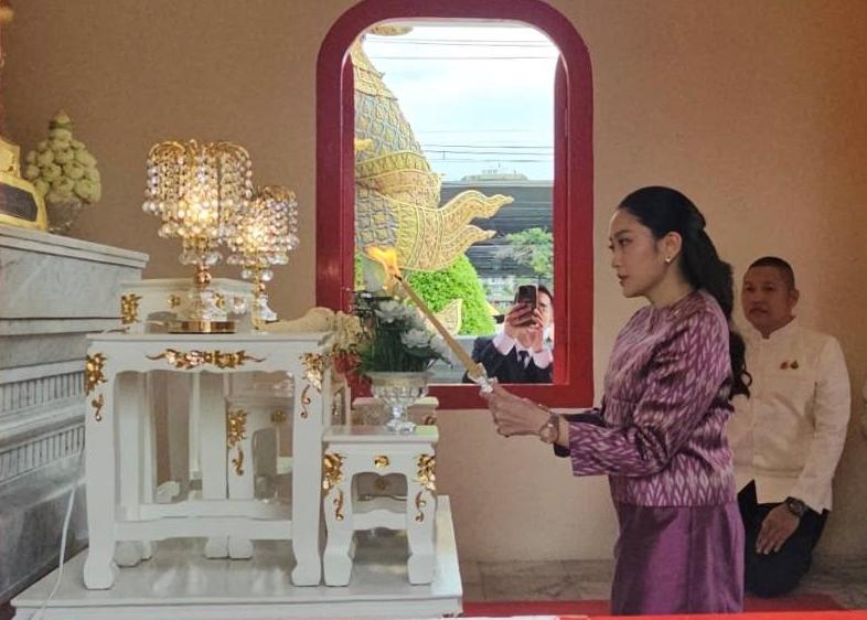 ทันทีที่มาถึง น.ส.แพทองธาร สักการะสิ่งศักดิ์สิทธิ์ประจำกระทรวง ได้แก่ พระพุทธสิริวัฒนธรรโมภาส พระสยามเทวาธิราช และศาลตา-ยาย จากนั้นสักการะสิ่งศักดิ์สิทธิ์ประจำศูนย์วัฒนธรรม ได้แก่ พระพุทธชินราช พระพิฆเนศ ศาลพระภูมิ พ่อแก่ และศาลตา-ยาย